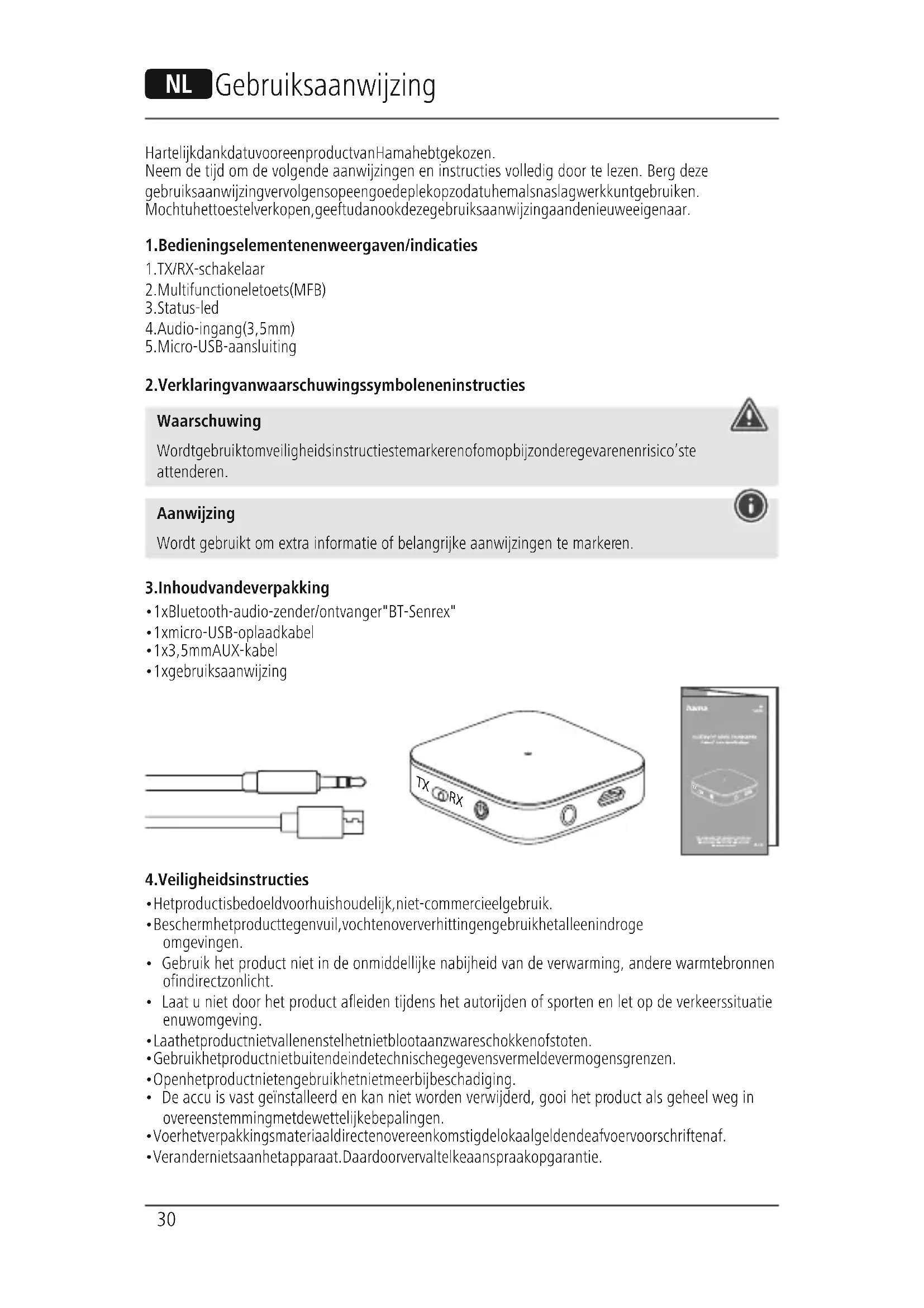 GEBRUIKSAANWIJZING BTSenrex HAMA