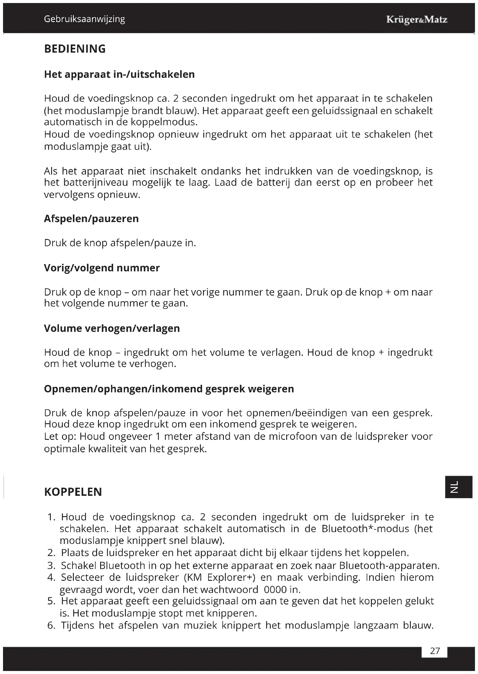 GEBRUIKSAANWIJZING KM0553 Krüger&Matz