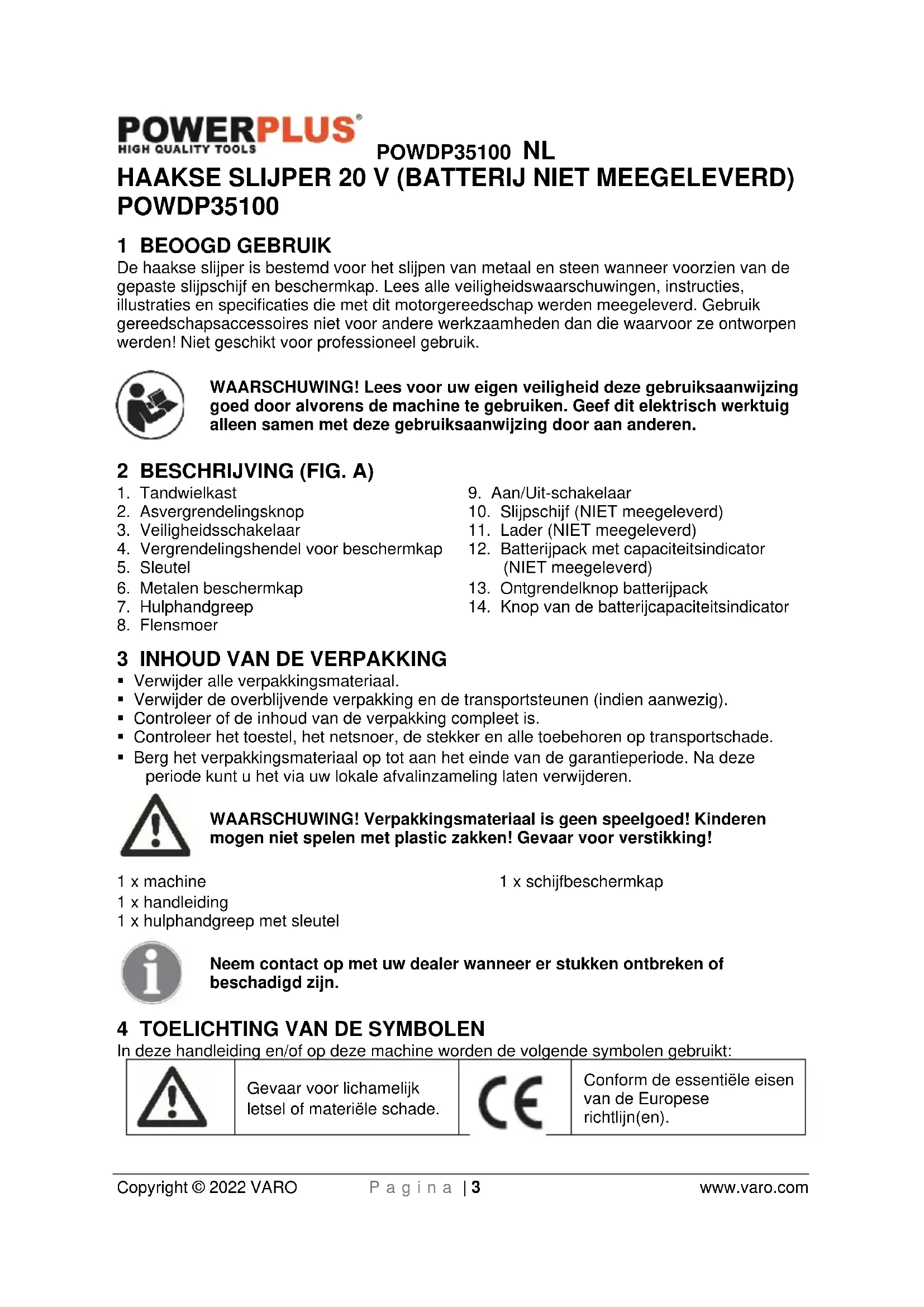 Download de handleiding voor uw Vermaler in PDF-formaat gratis! Vind uw handleiding POWDP35100 - PowerPlus en neem uw elektronisch apparaat weer in handen. Op deze pagina staan alle documenten die nodig zijn voor het gebruik van uw apparaat. POWDP35100 van het merk PowerPlus.