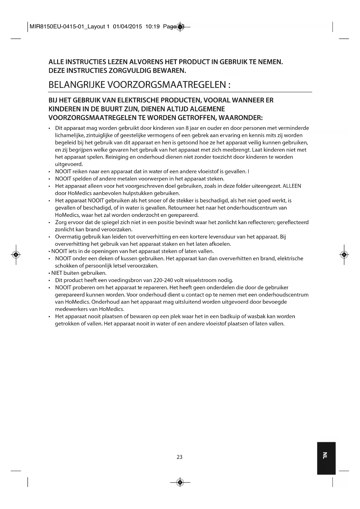 MIR8150EU - Spiegel HOMEDICS - Gratis gebruiksaanwijzing en handleiding