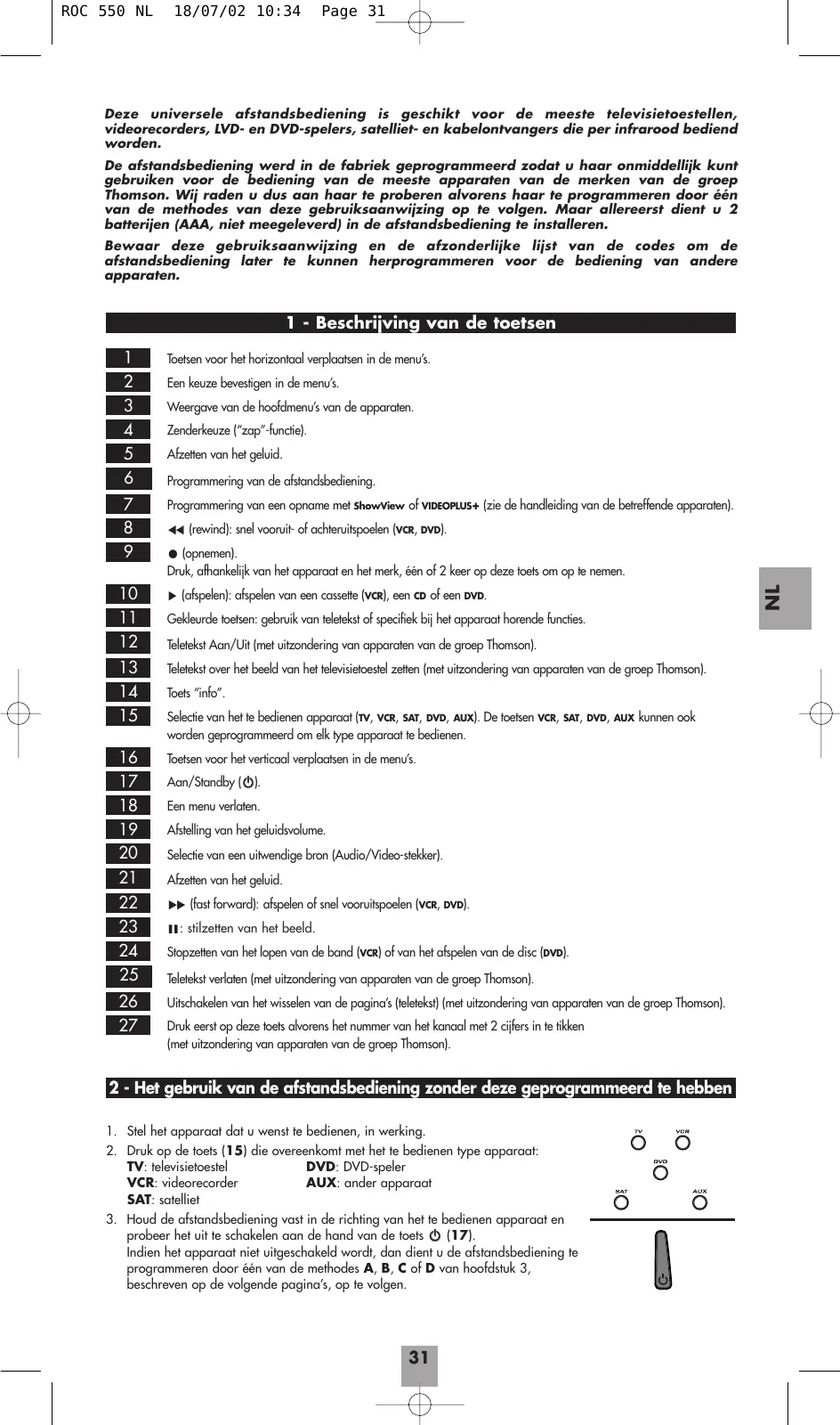 ROC 550 - Afstandsbediening THOMSON - Gratis gebruiksaanwijzing en handleiding