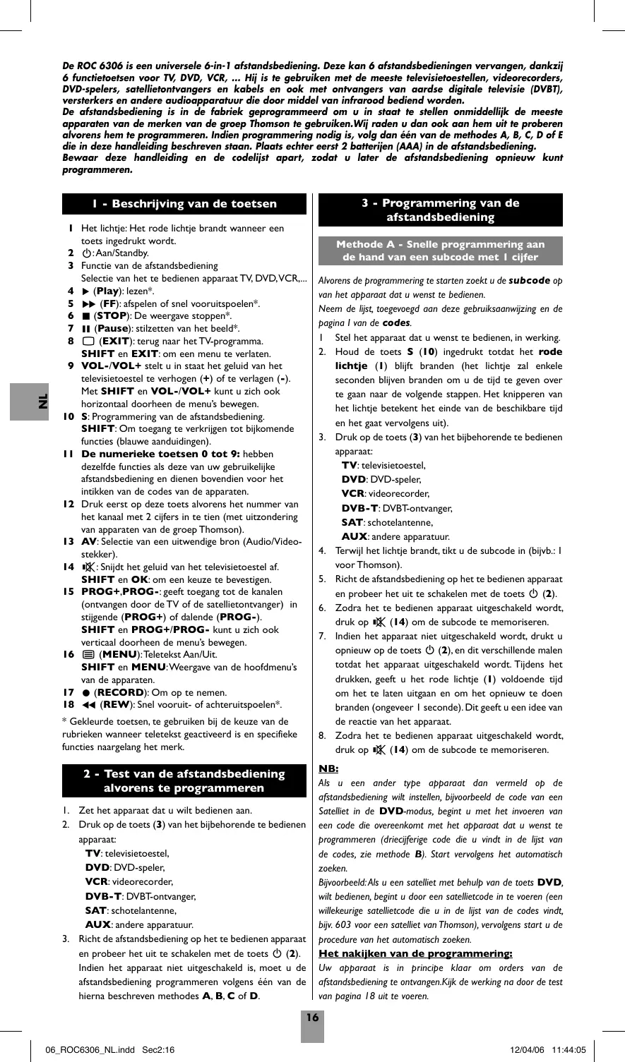 GEBRUIKSAANWIJZING ROC6306 THOMSON