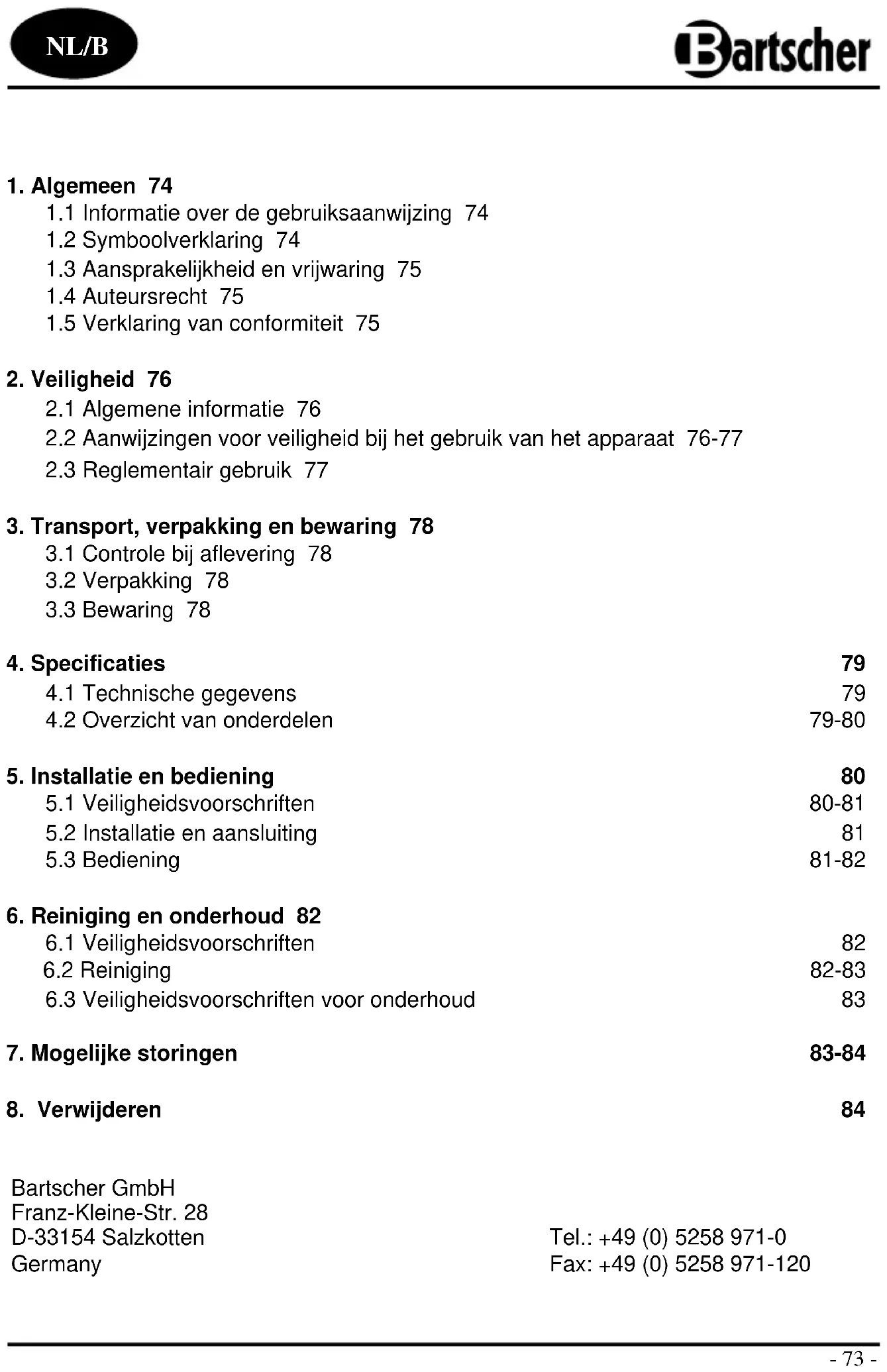 Vind de handleiding van het apparaat gratis 200232 BARTSCHER in PDF-formaat.