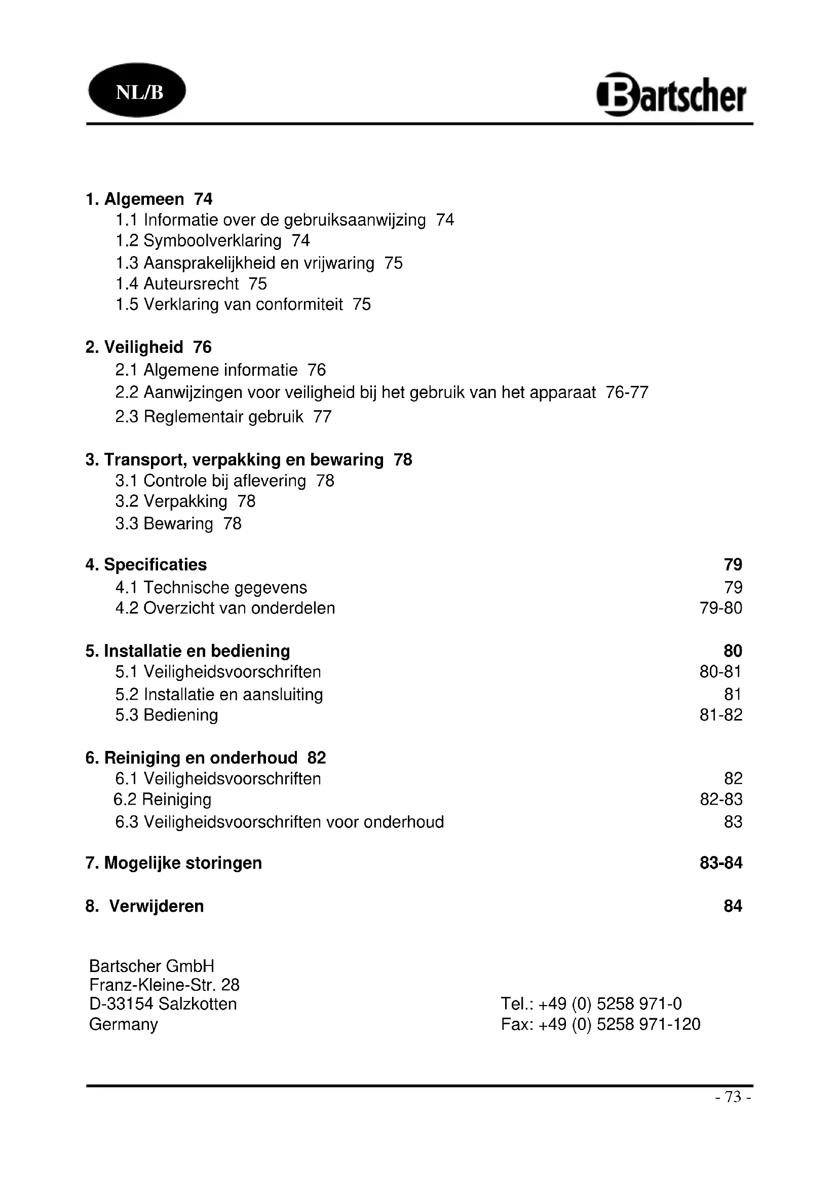 Vind de handleiding van het apparaat gratis 200233 BARTSCHER in PDF-formaat.