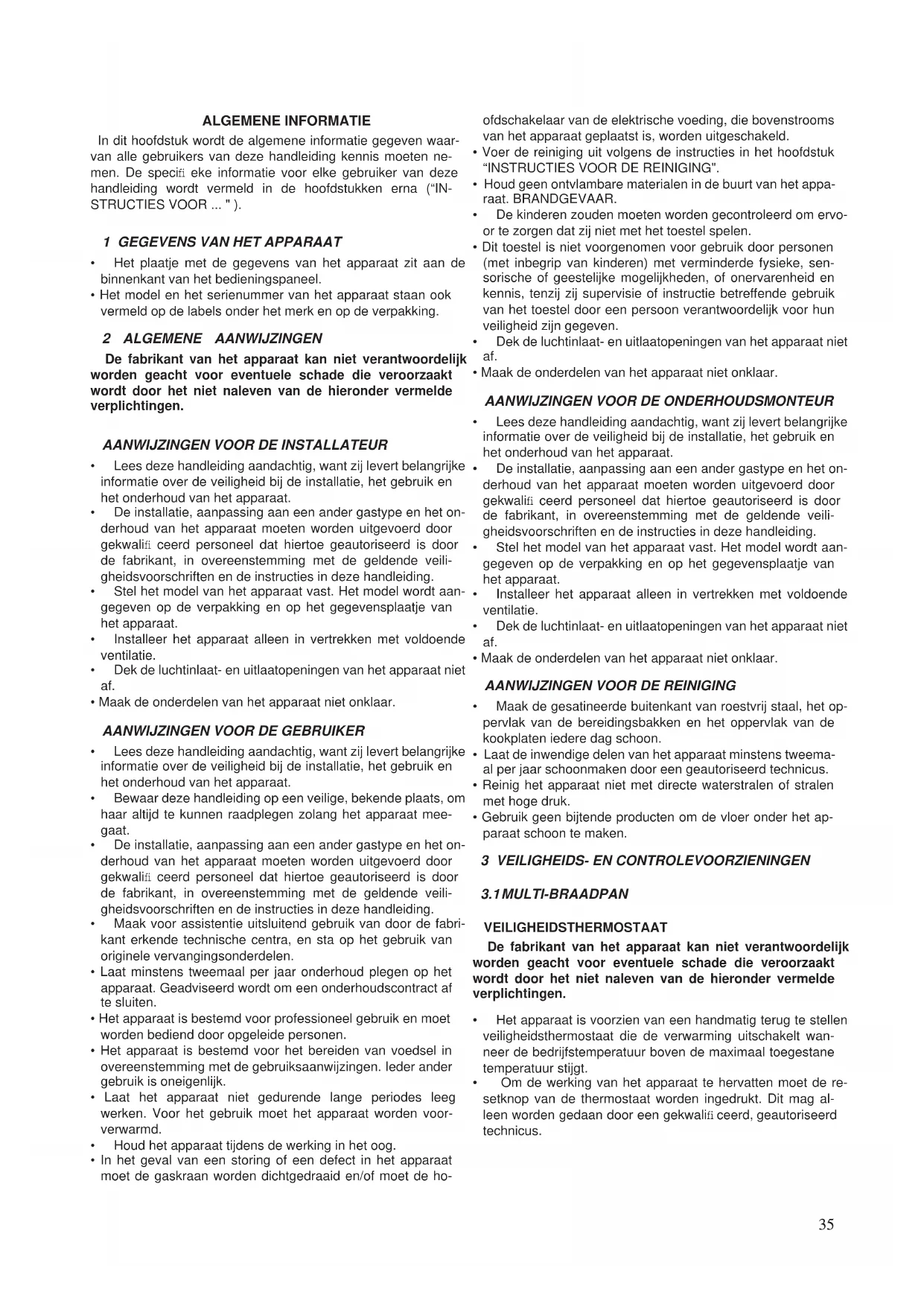 VEILIGHEIDSTHERMOSTAAT De fabrikant van het apparaat kan niet verantwoordelijk worden geacht voor eventuele schade die veroorzaakt wordt door het niet naleven van de hieronder vermelde verplichtingen.