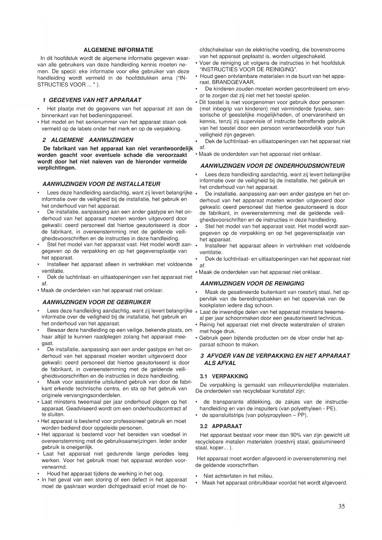 - Het model en het serienummer van het apparaat staan ook vermeld op de labels onder het merk en op de verpakking. 2 ALGEMENE AANWIJZINGEN De fabrikant van het apparaat kan niet verantwoordelijk worden geacht voor eventuele schade die veroorzaakt wordt door het niet naleven van de hieronder vermelde verplichtingen.
