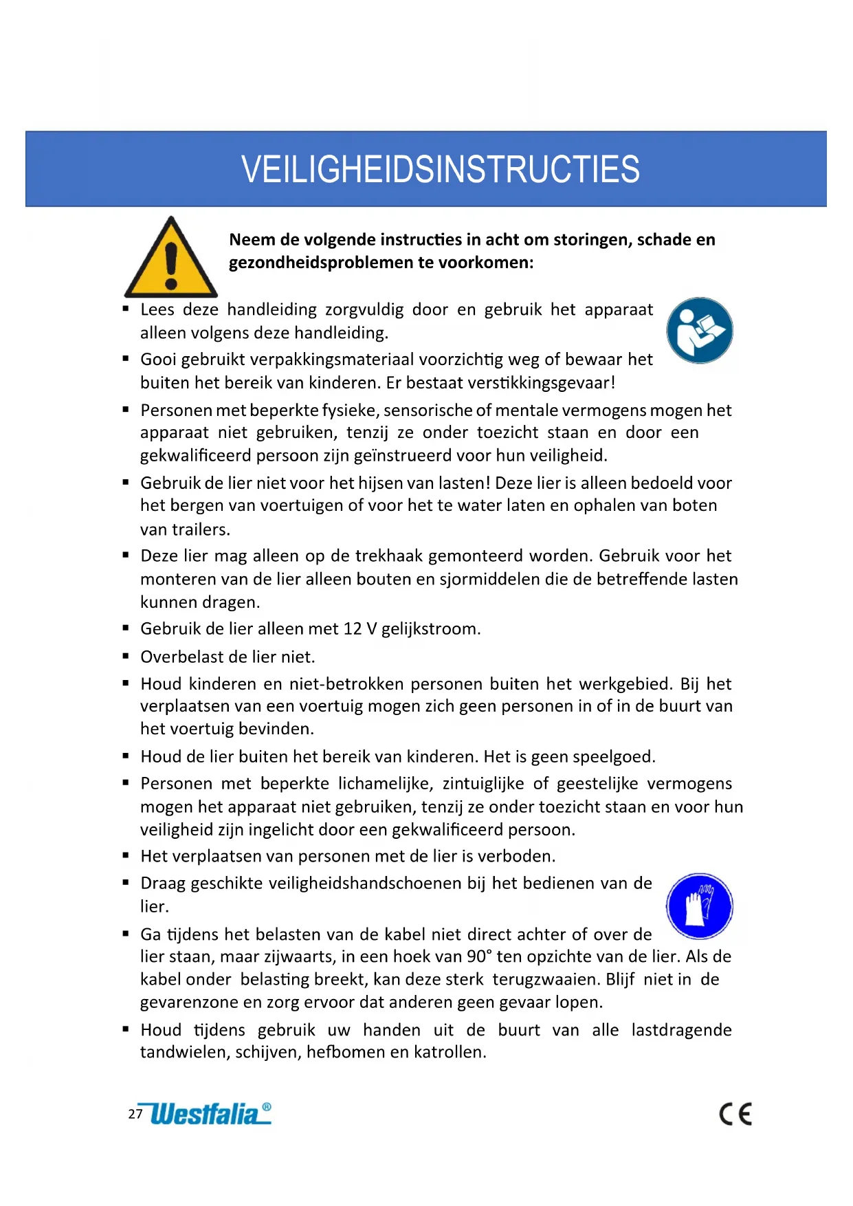 802947 - Elektrische lier Westfalia - Gratis gebruiksaanwijzing en handleiding