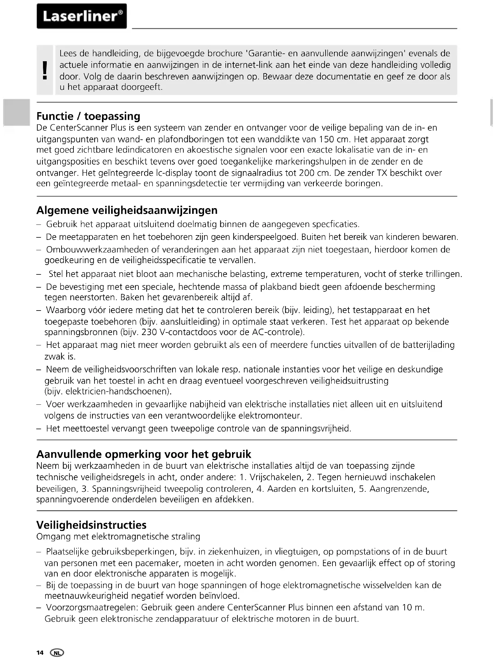 GEBRUIKSAANWIJZING CenterScanner Plus Laserliner