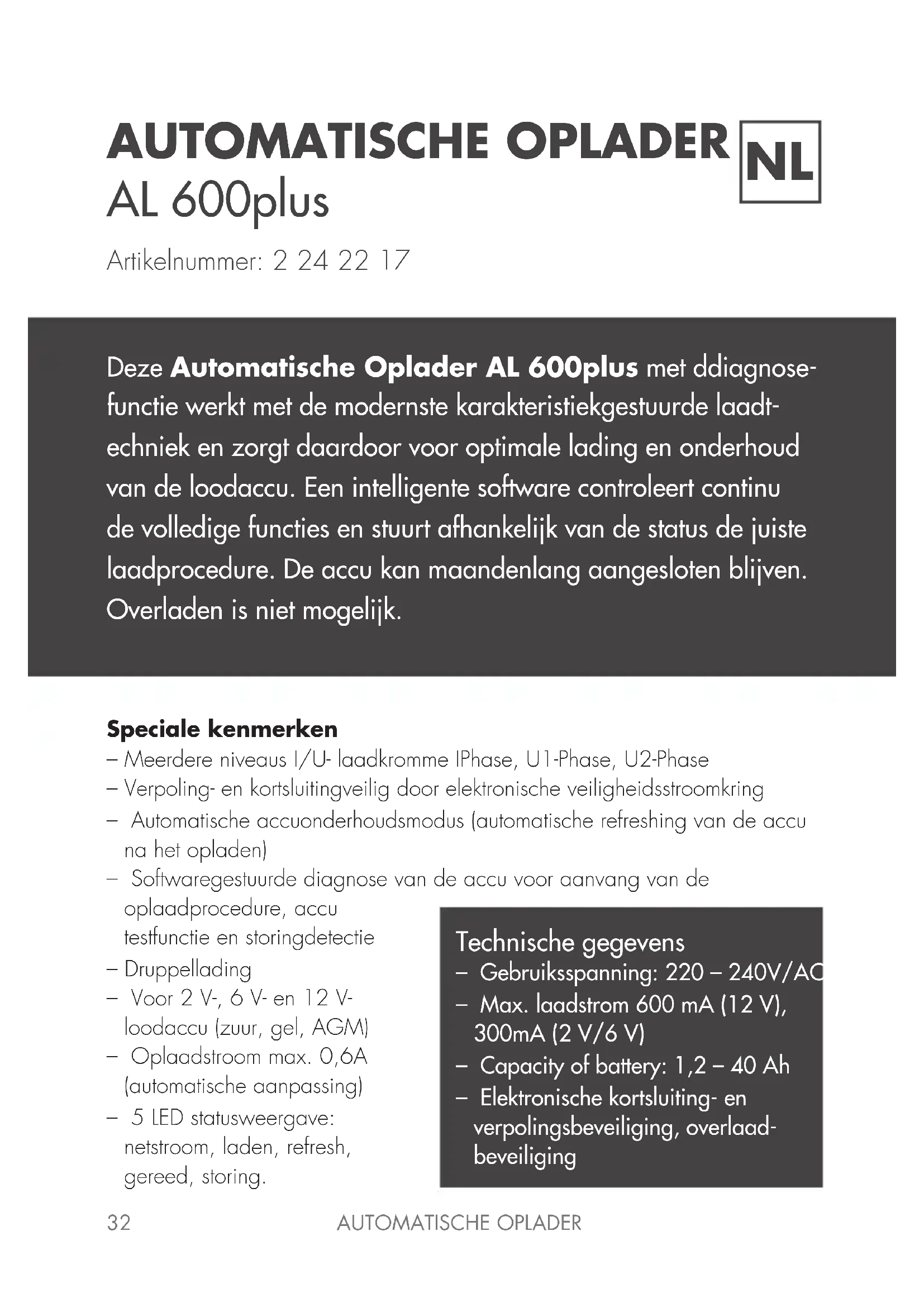 GEBRUIKSAANWIJZING AL600plus H-Tronic