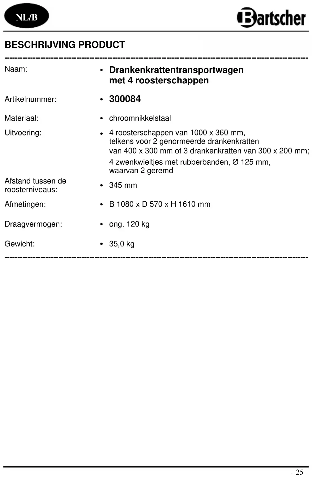TGK400 - Transportkar BARTSCHER - Gratis gebruiksaanwijzing en handleiding