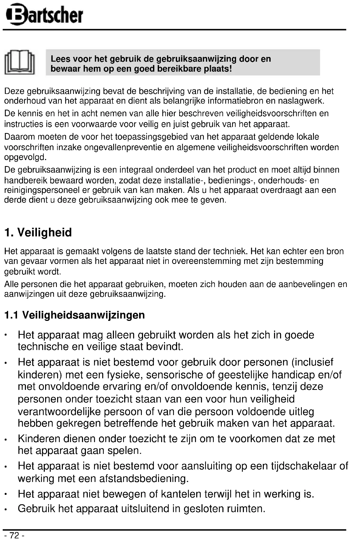 Vind de handleiding van het apparaat gratis 109470 BARTSCHER in PDF-formaat.