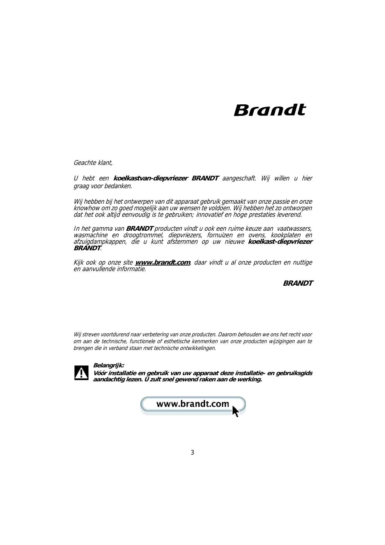 Kijk ook op once site www.brandt.com, waar vindt u al once producten en nuttige en aanvullende informatie.