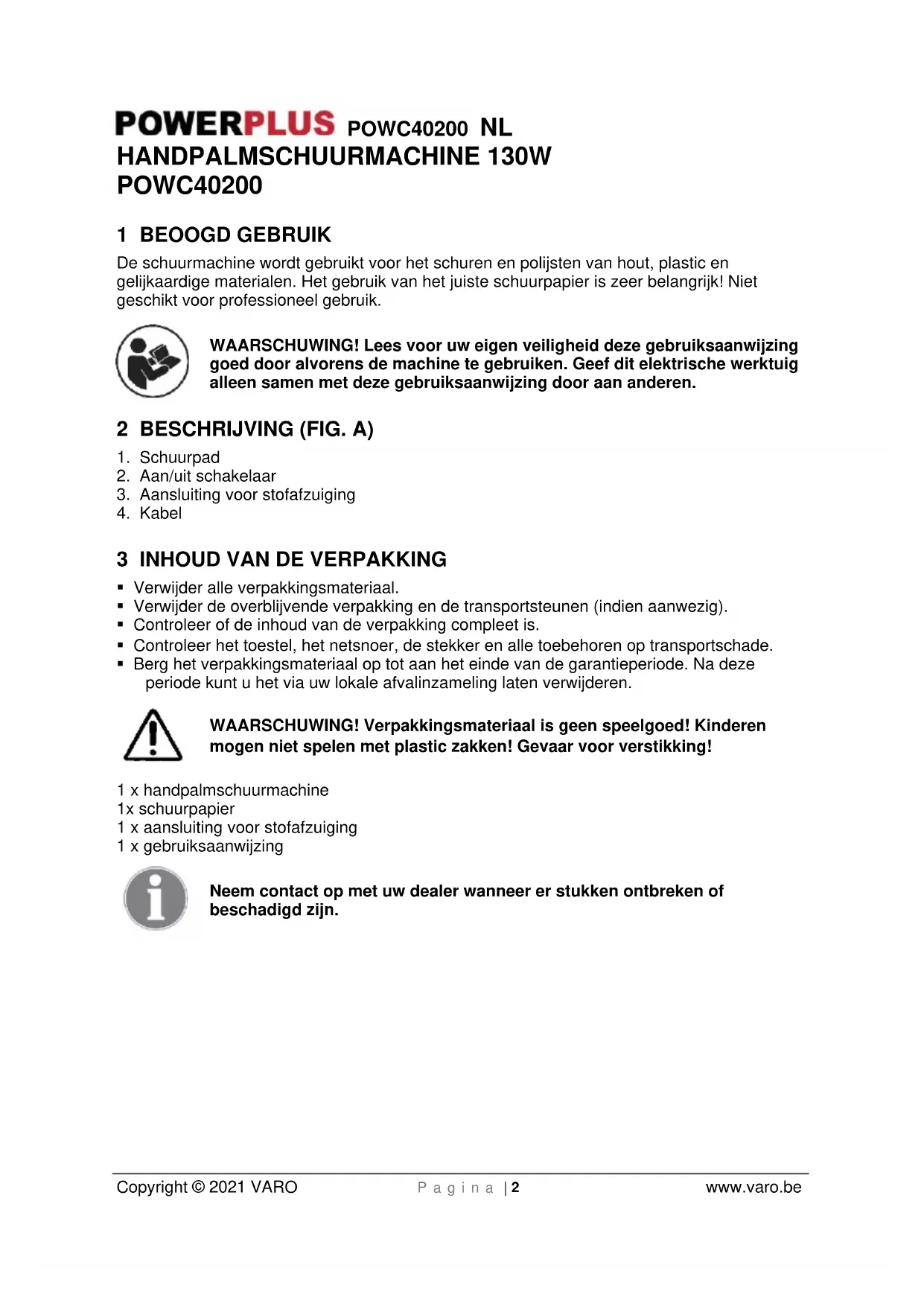 Vind de handleiding van het apparaat gratis POWC40200 PowerPlus in PDF-formaat.