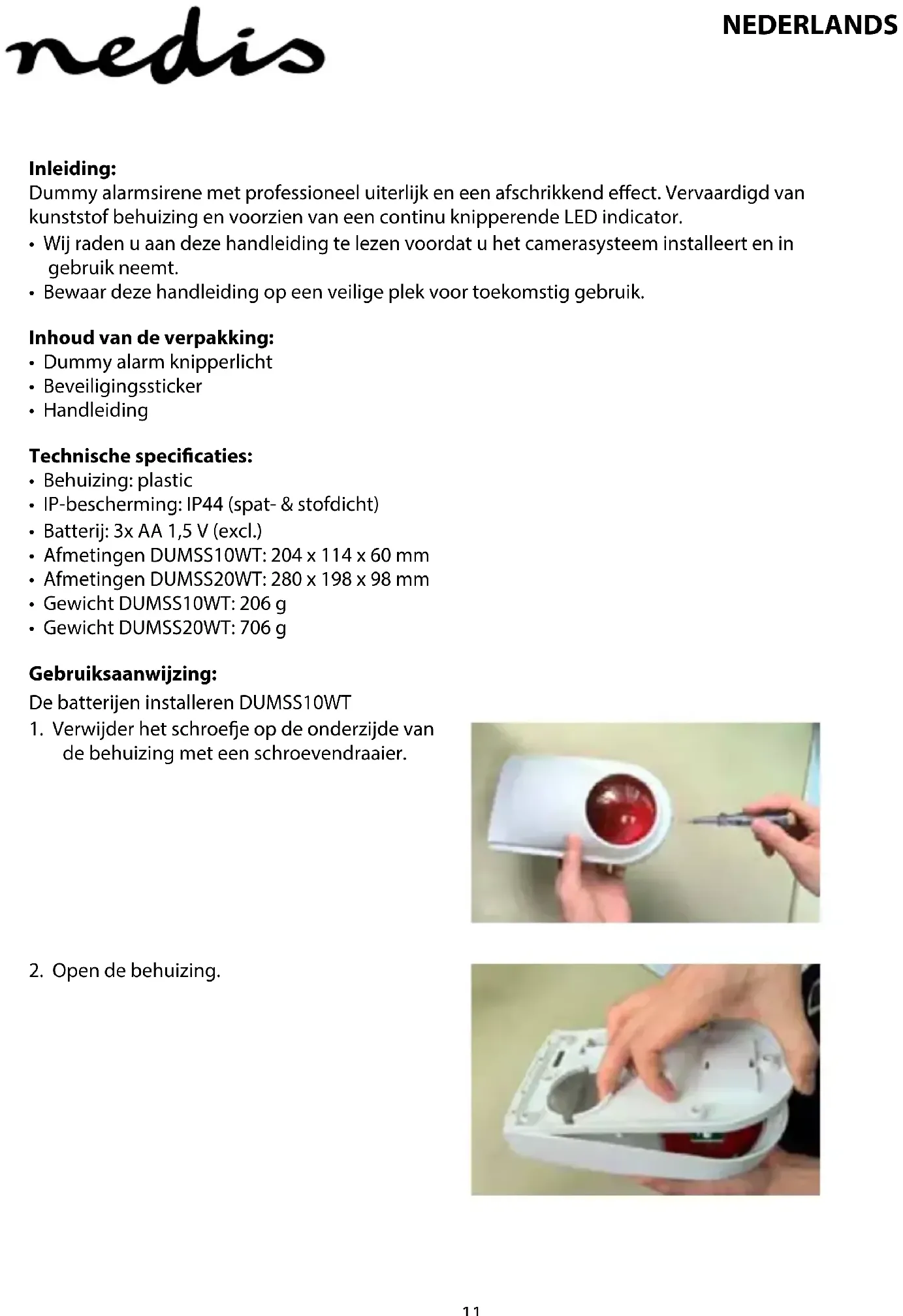 Download de handleiding voor uw Alarmsysteem in PDF-formaat gratis! Vind uw handleiding DUMSS20WT - NEDIS en neem uw elektronisch apparaat weer in handen. Op deze pagina staan alle documenten die nodig zijn voor het gebruik van uw apparaat. DUMSS20WT van het merk NEDIS.