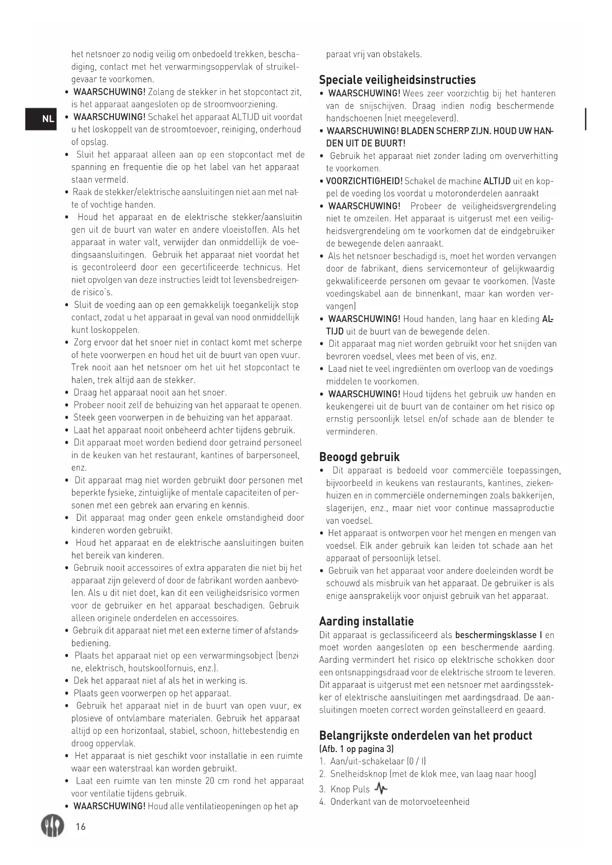 - Het apparaat is ontworpen voor het mengen en mengen van voedsel. Elk ander gebruik kan leiden tot schade aan het apparaat of persoonlijk letsel.