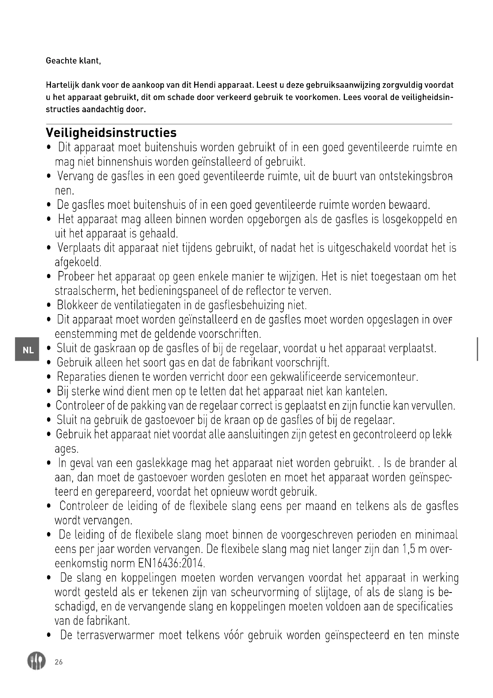- De terrasverwarmer moet telkens vóór gebruik worden geïnspecteerd en ten minste27