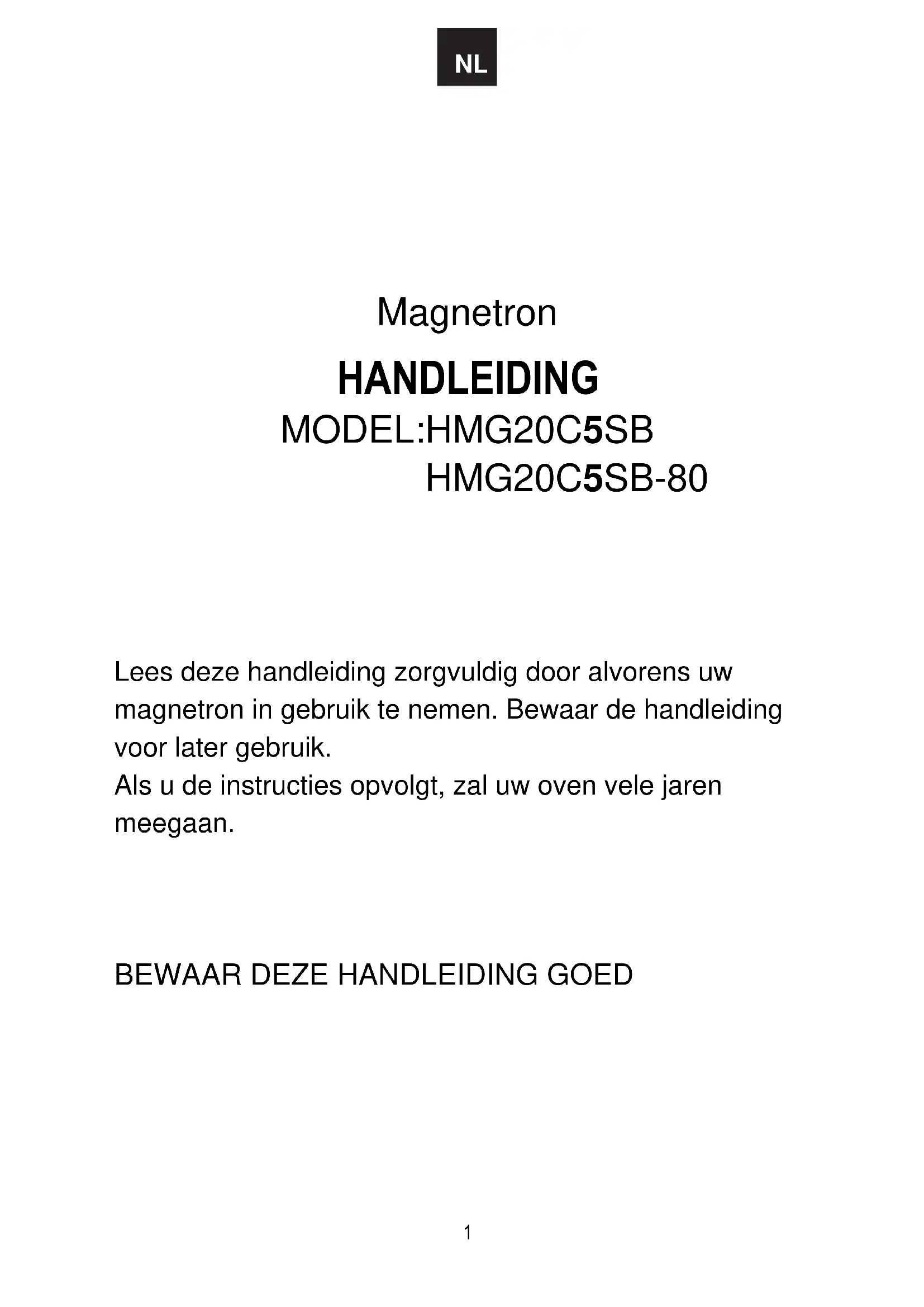 Lees deze handleiding zorgvuldig door alvorens uw magnetron in gebruik te nemen. Bewaar de handleiding voor later gebruik. Als u de instructies opvolgt, zal uw oven vele jaren meegaan.