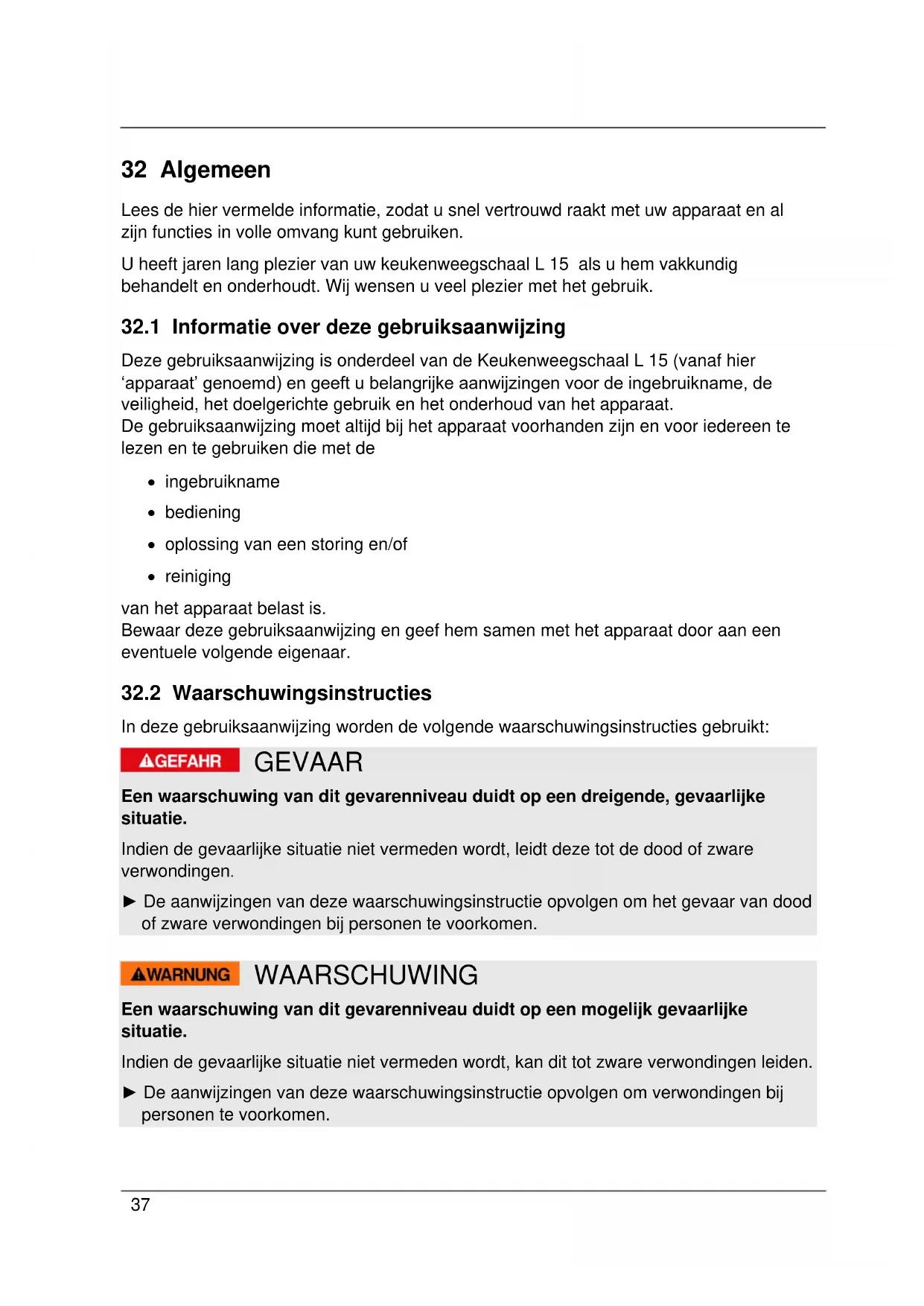32.2 Waarschuwingsinstructies