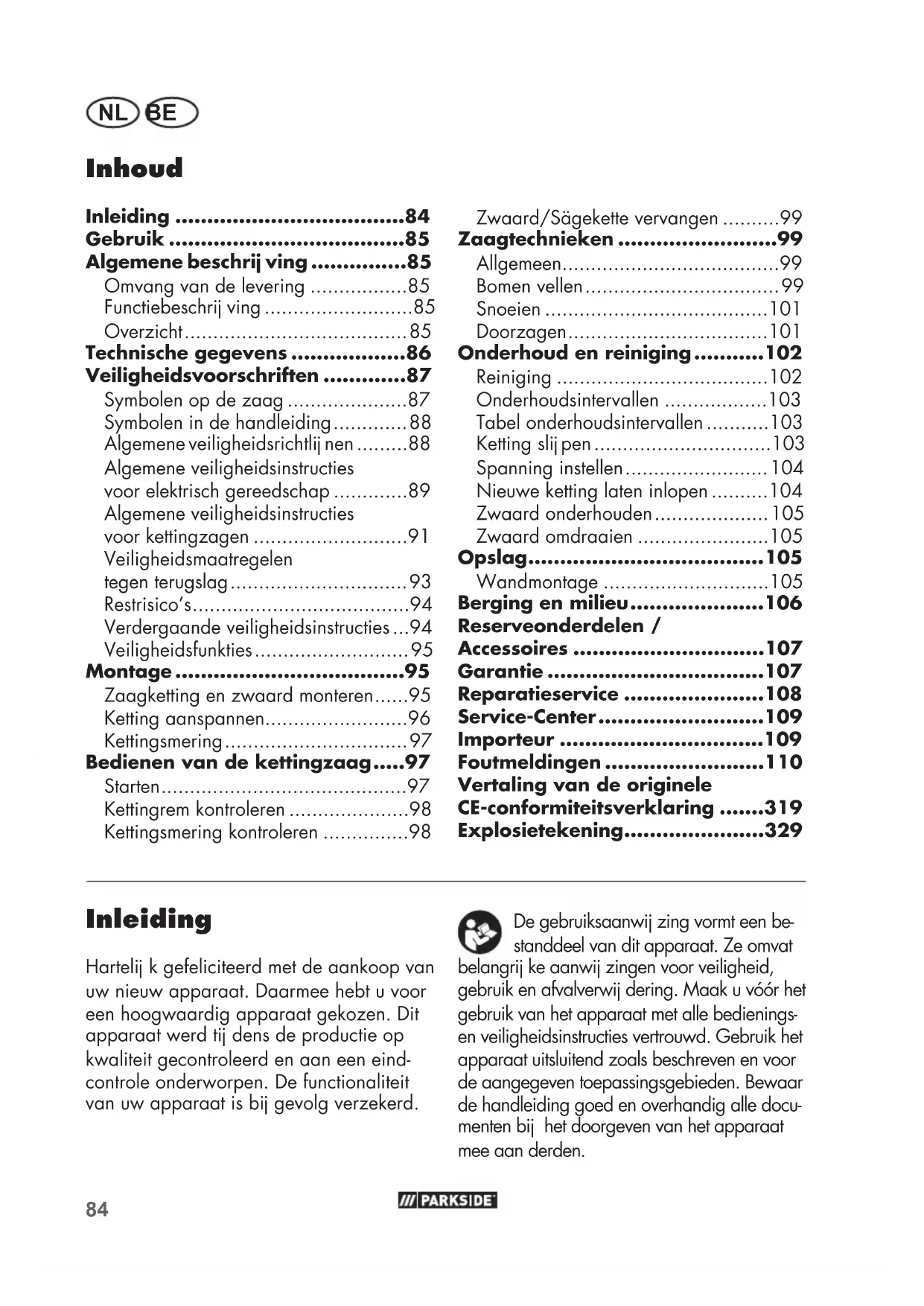 De garantievergoeding geldt voor materiaal- of fabricagefouten. Deze garantie is Niet van toepassing op productonderdelen, die aan een normale slij tage blootgesteld zich n en.daarom als aan slij tage onderheige onderdelen beschouwd hunnen worden (b.v. ketting) of op beschadigingen aan breekbare onderdelen (b.v. schakelaars). Deze garantie valt weg wanner het product beschadigd, Niet oordeelkundig gebruikt of Niet onderhonden ward. Voor een vakkundig gebruik van het product dienen alle in de gebruiksaanwij zing vermelde aanwij zingen nauwgezet in acht genomen te worden. Gebruidsdoeleinden en handelingen, die in de gebruiksaanwij zing afgeraden worden of waarvoor gewaarschuwd wordt, dieren onvooraardelijk k vermeden te worden. Het product is uitsluitend voor het prive- en Niet voor het commerciele gebruik bestemd. Bij een verkeerde of onoordeelkundige behandeling, toepassing van geweld en bij ingrepen, die Niet door het door ons geautoriseerde servicefi liaal doorgevoerd werden, valt de garantie wet.