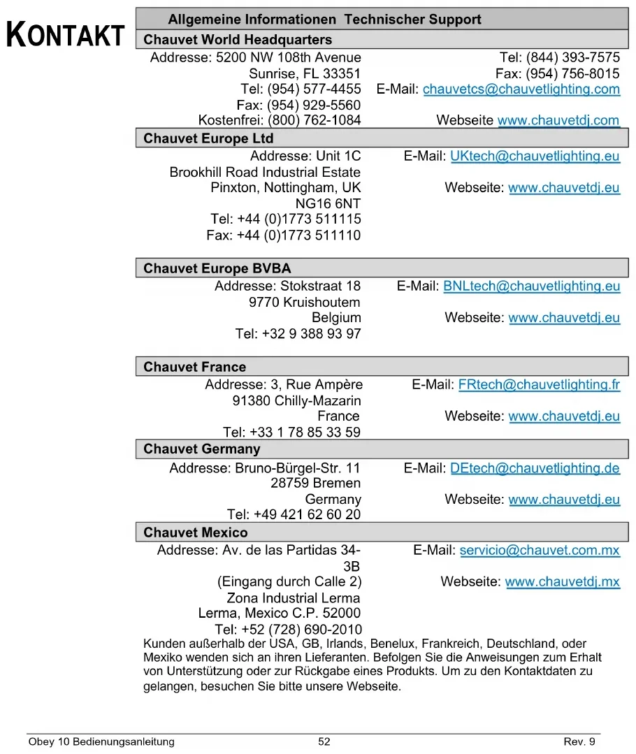 - Als u zich in Duitsland bevindt, need dan contact op met Chauvet Germany.