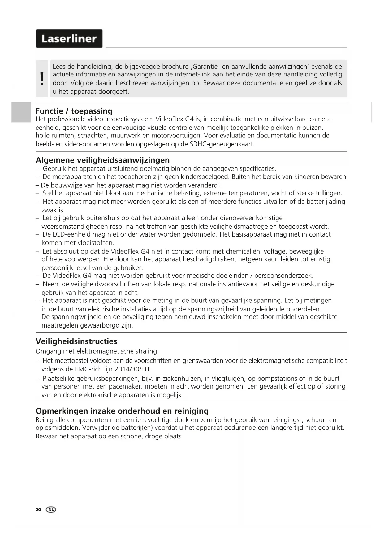 GEBRUIKSAANWIJZING VideoFlex G4 Micro Laserliner