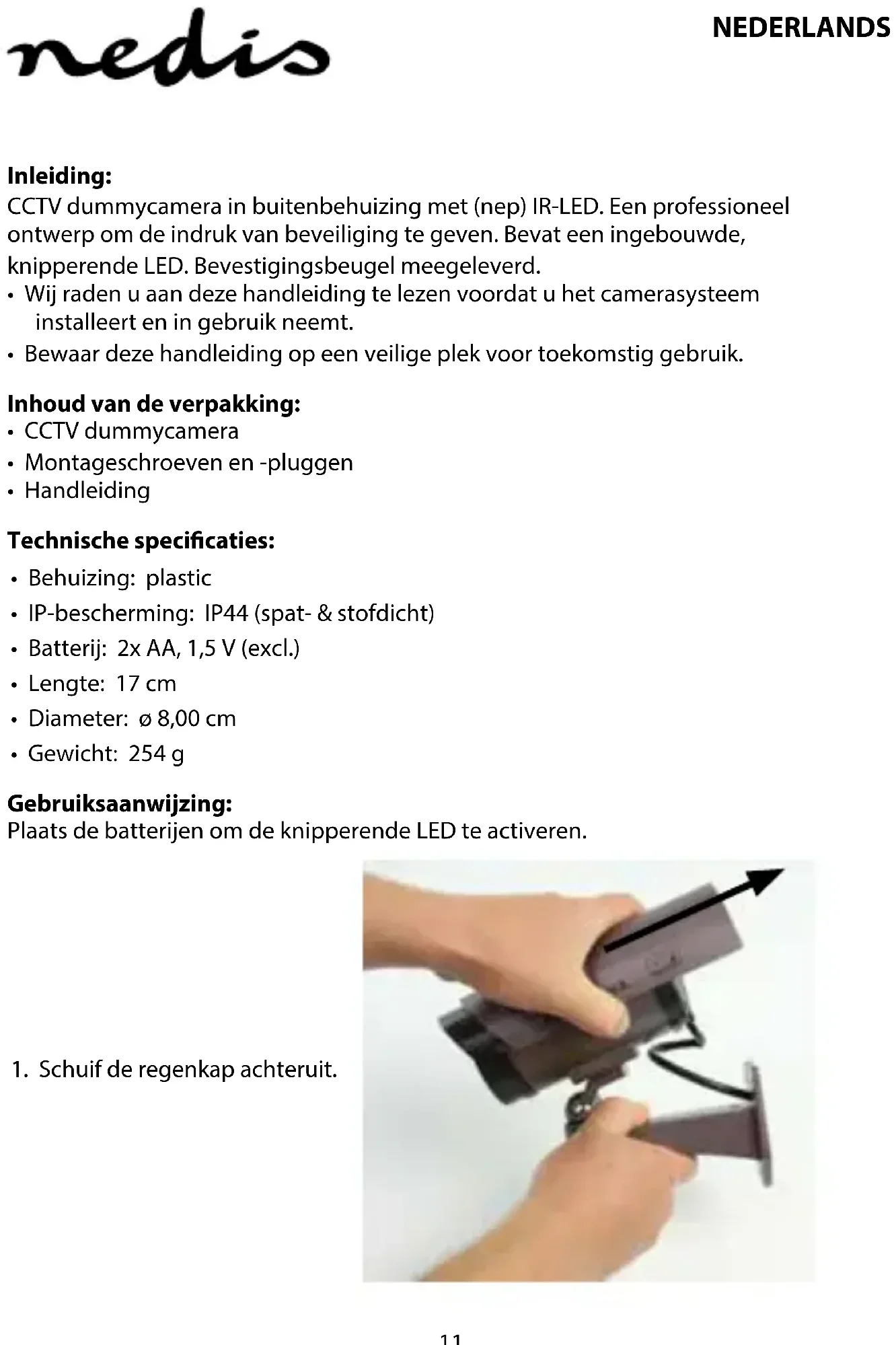 Download de handleiding voor uw Bewakingscamera in PDF-formaat gratis! Vind uw handleiding DUMCB40GY - NEDIS en neem uw elektronisch apparaat weer in handen. Op deze pagina staan alle documenten die nodig zijn voor het gebruik van uw apparaat. DUMCB40GY van het merk NEDIS.