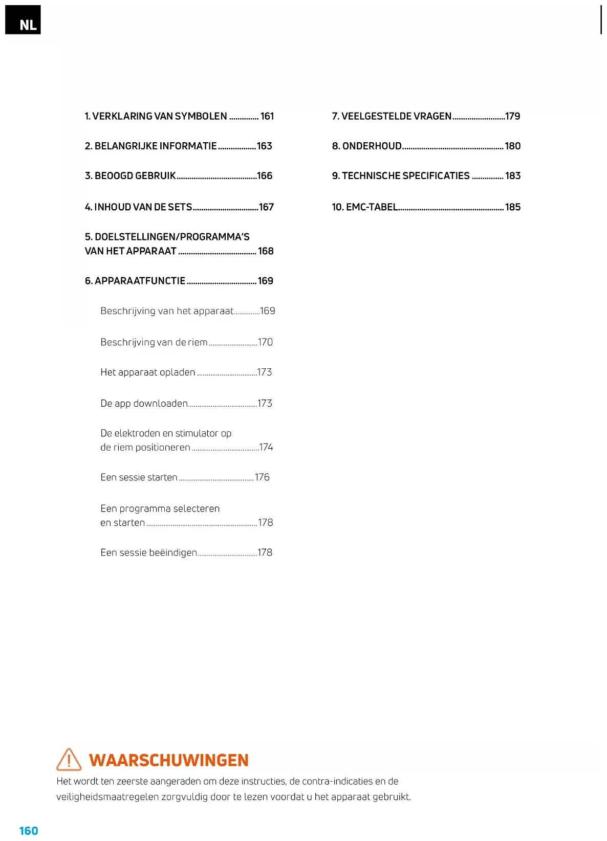Het apparaat is bedoeld voor gebruik op de buikstreek en de lage rug en mag alleen op een gezonde huid worden gebruikt.167