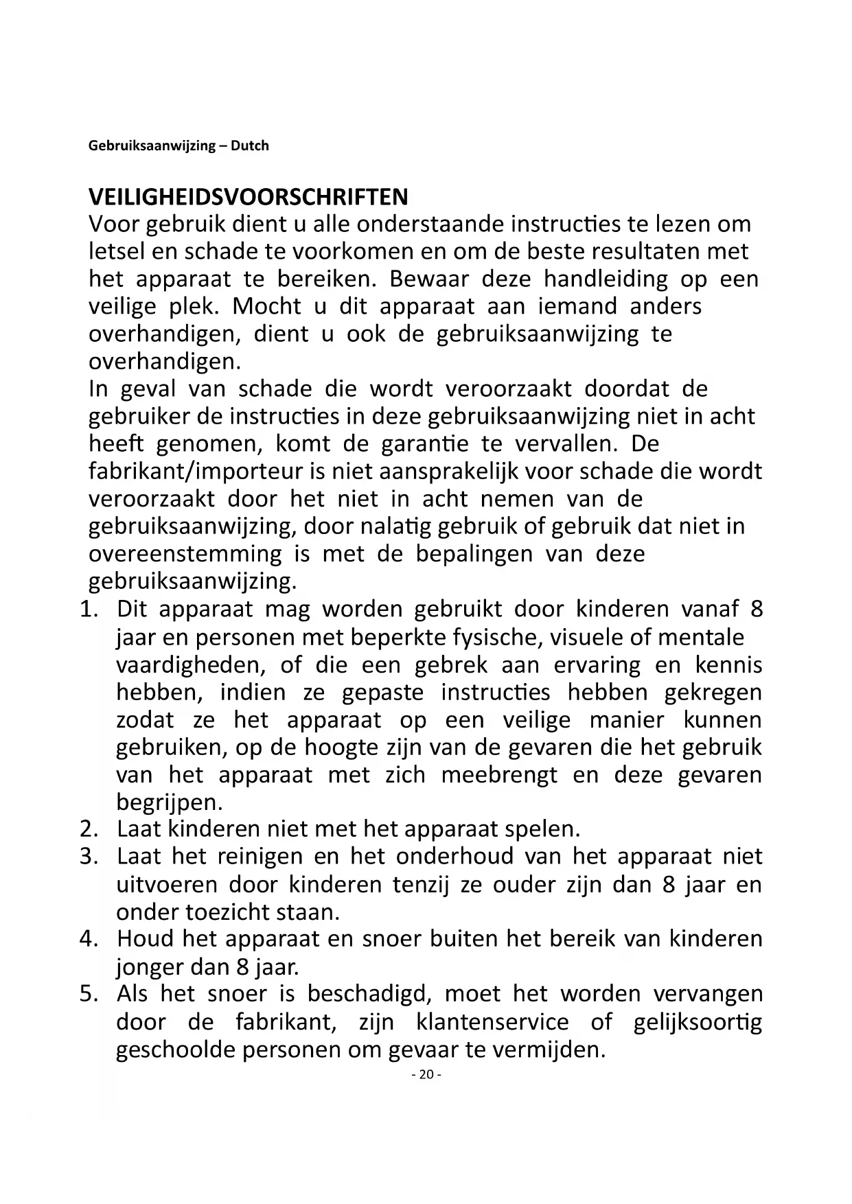 1. Dit apparaat mag worden gebruikt door kinderen vanaf 8