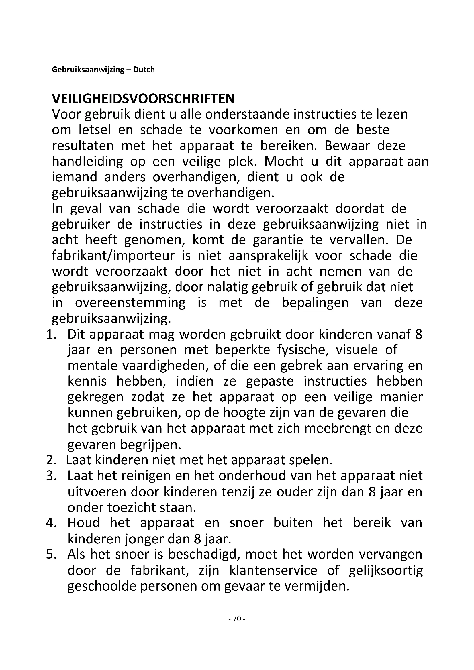 1. Dit apparaat mag worden gebruikt door kinderen vanaf 8
