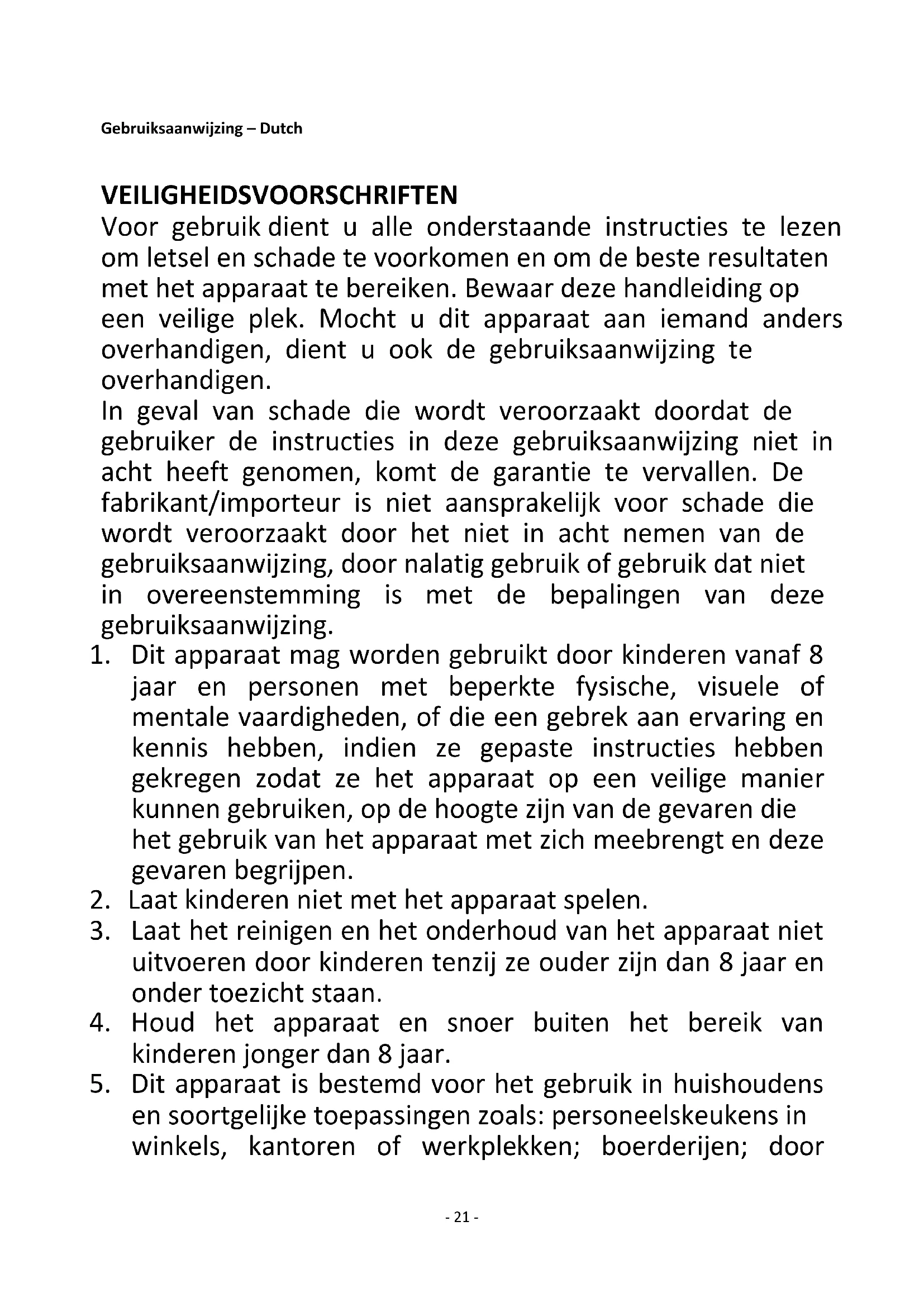 5. Dit apparaat is bestemd voor het gebruik in huishoudens