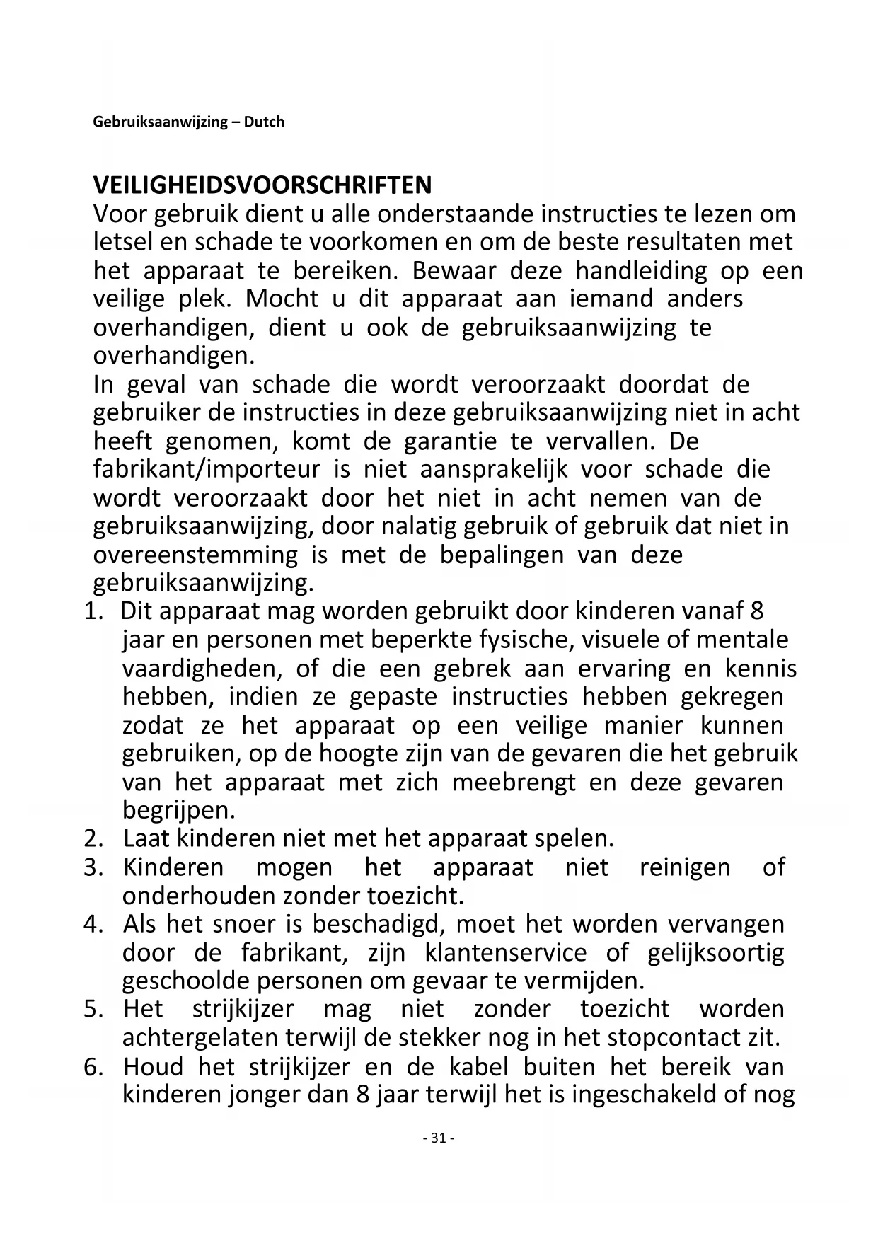 30. Plaats het strijkijzer altijd op een stevige, vlakke ondergrond