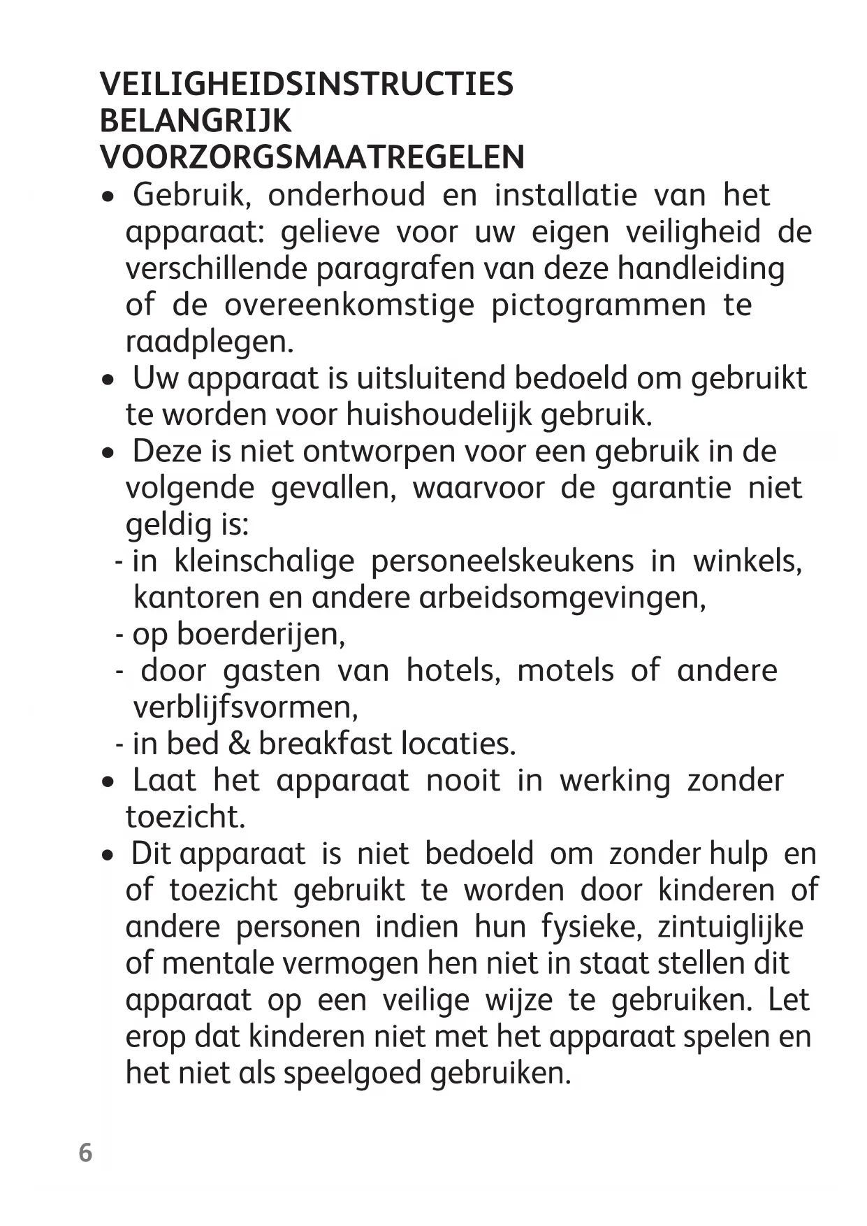 - Uw apparaat is uitsluitend bedoeld om gebruikt te worden voor huishoudelijk gebruik.