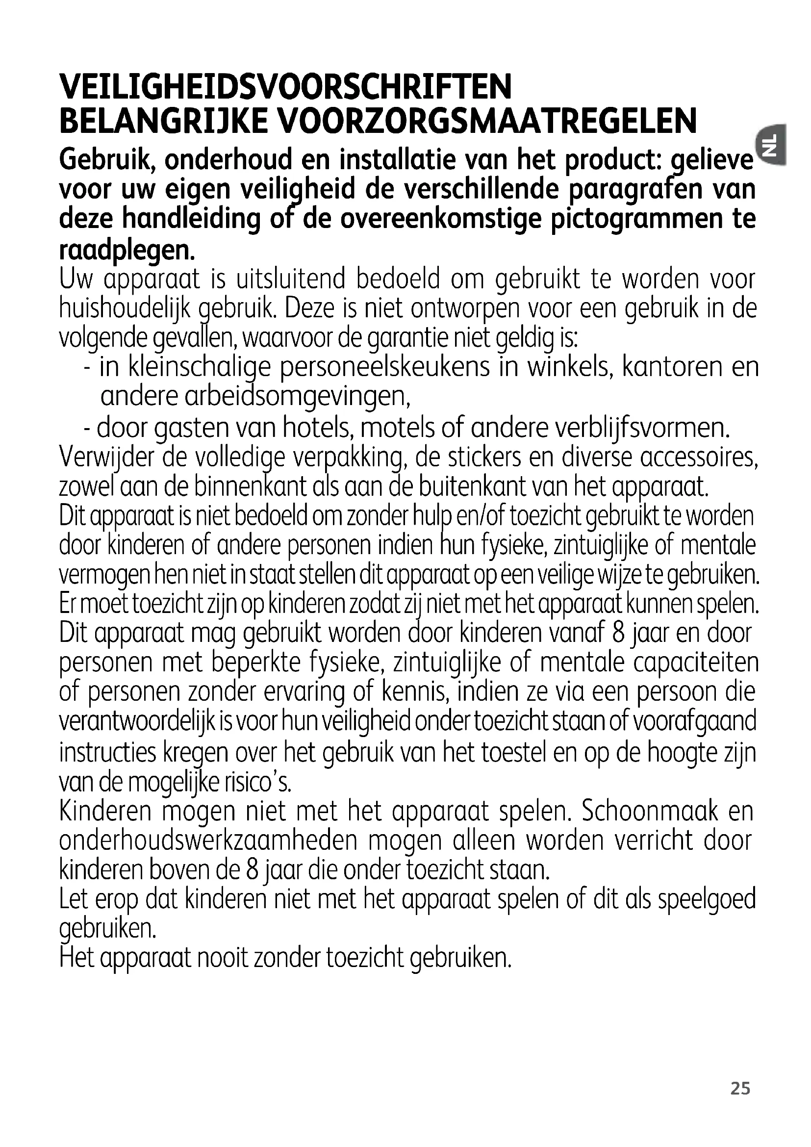 - Wij danken u voor de aankoop van dit apparaat, dat uitsluitend bestemd is voor huishoudelijk gebruik.