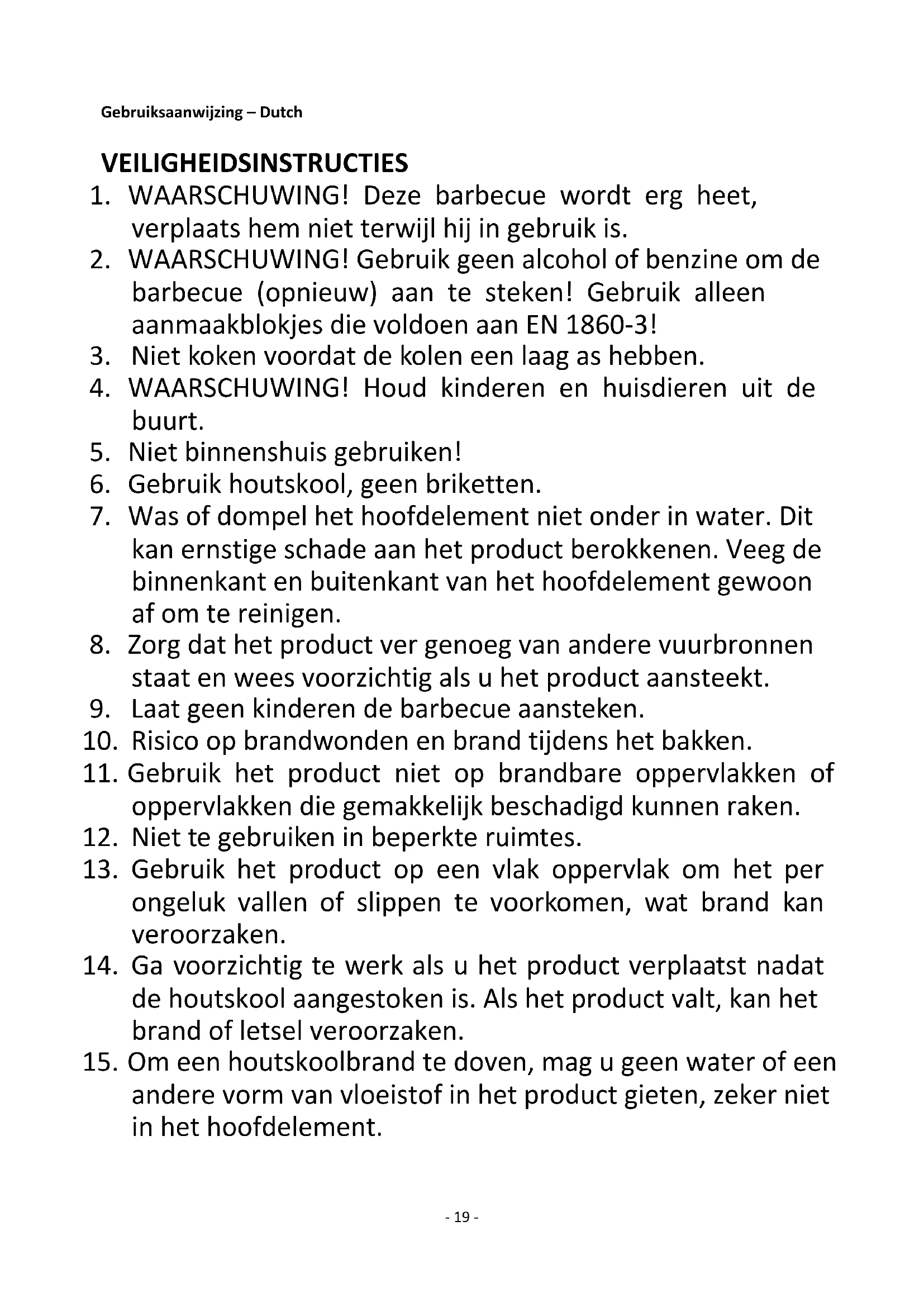 Gebruiksaanwijzing – Dutch VEILIGHEIDSINSTRUCTIES
