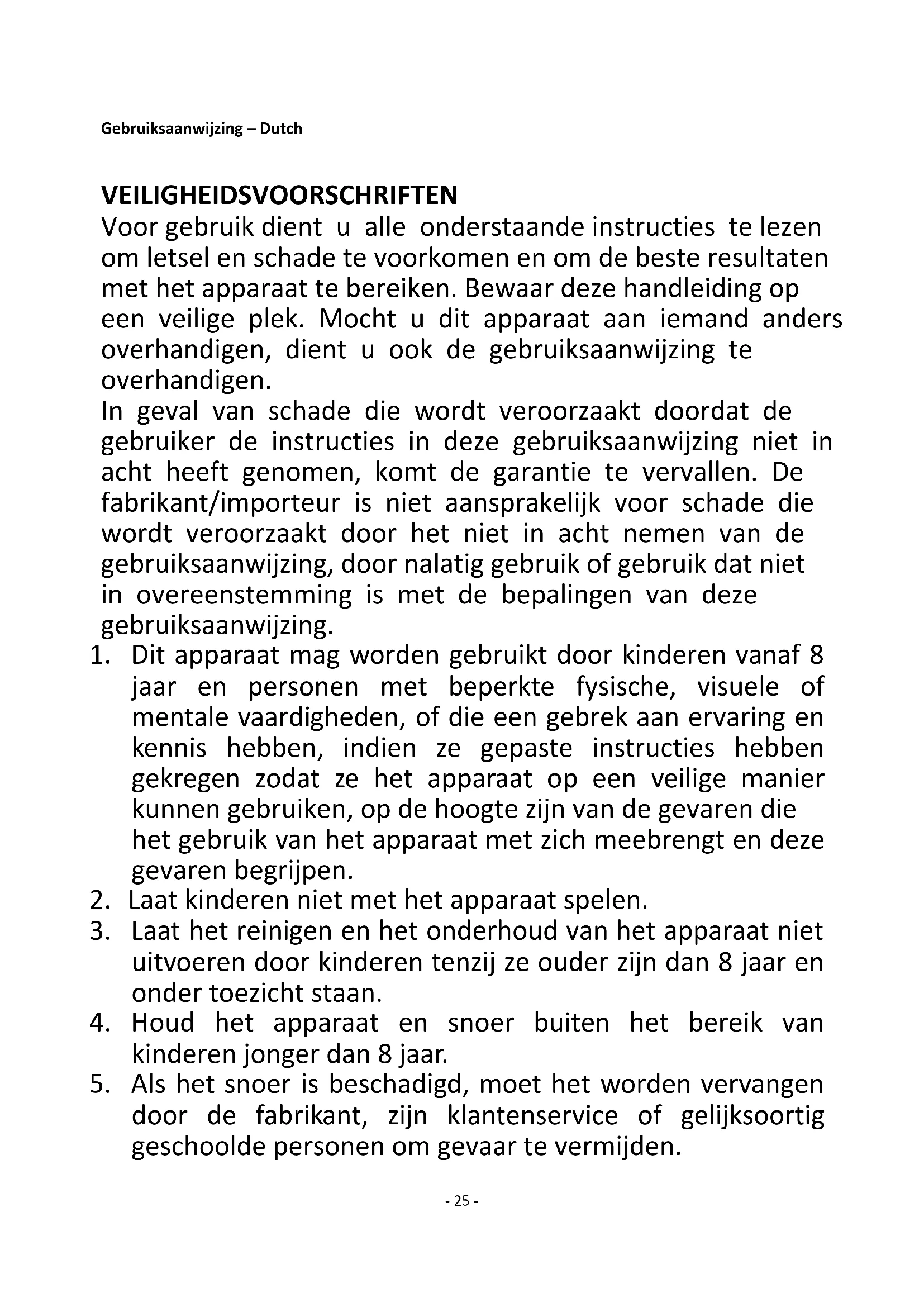 1. Dit apparaat mag worden gebruikt door kinderen vanaf 8