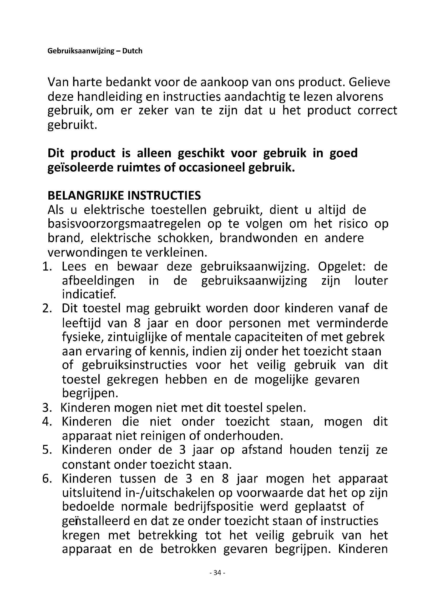 9. Dit apparaat is bestemd voor huishoudelijk gebruik en