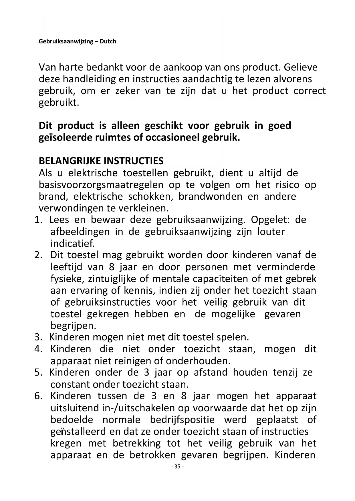 35. Gebruik deze verwarmer enkel zoals beschreven in deze