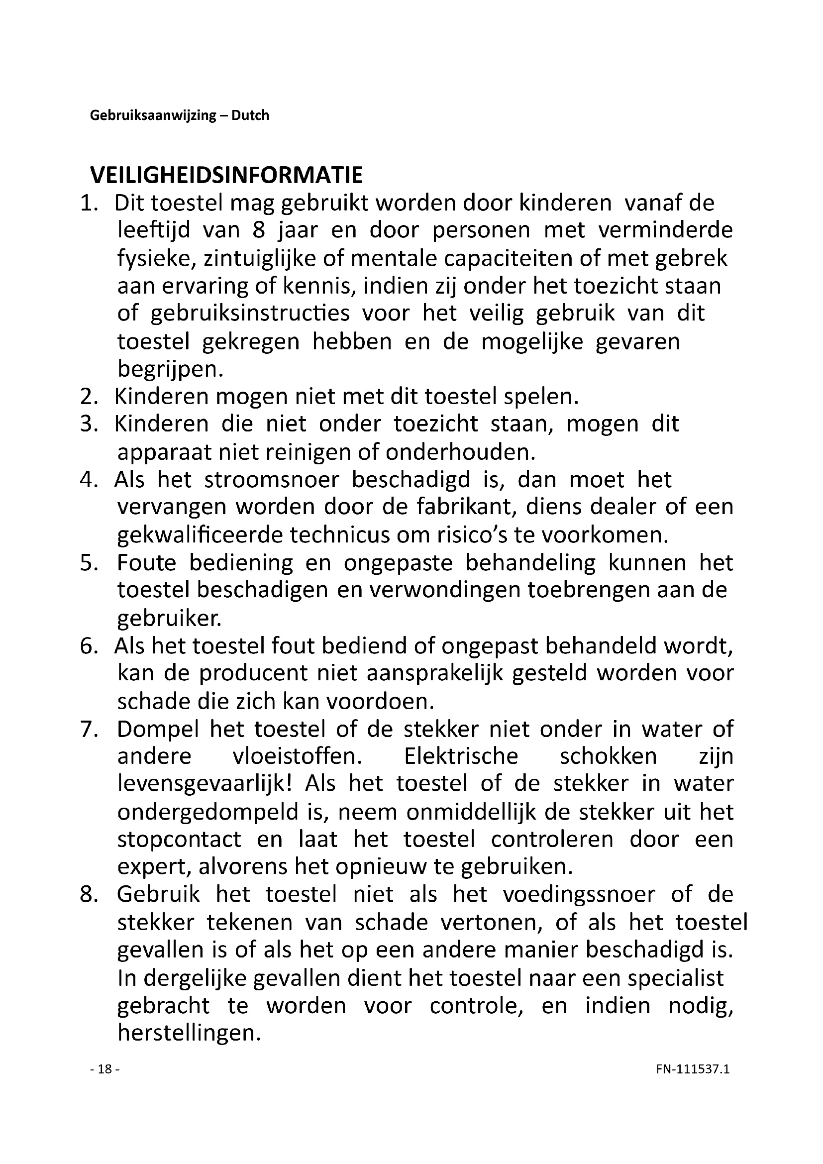 1. Dit toestel mag gebruikt worden door kinderen vanaf de