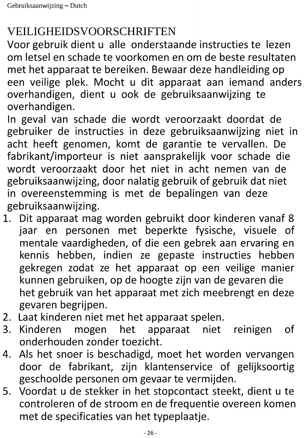 1. Dit apparaat mag worden gebruikt door kinderen vanaf 8