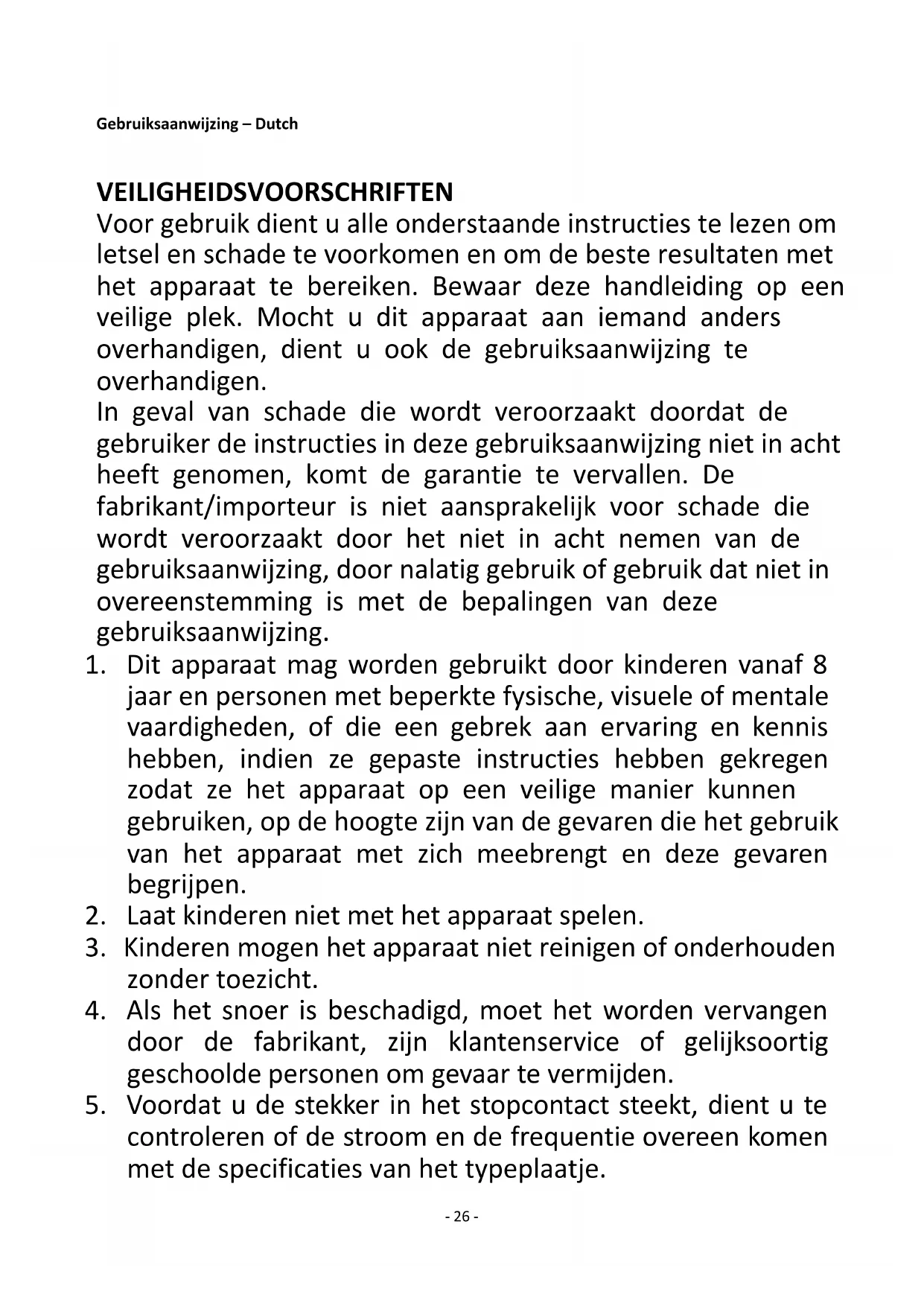 1. Dit apparaat mag worden gebruikt door kinderen vanaf 8