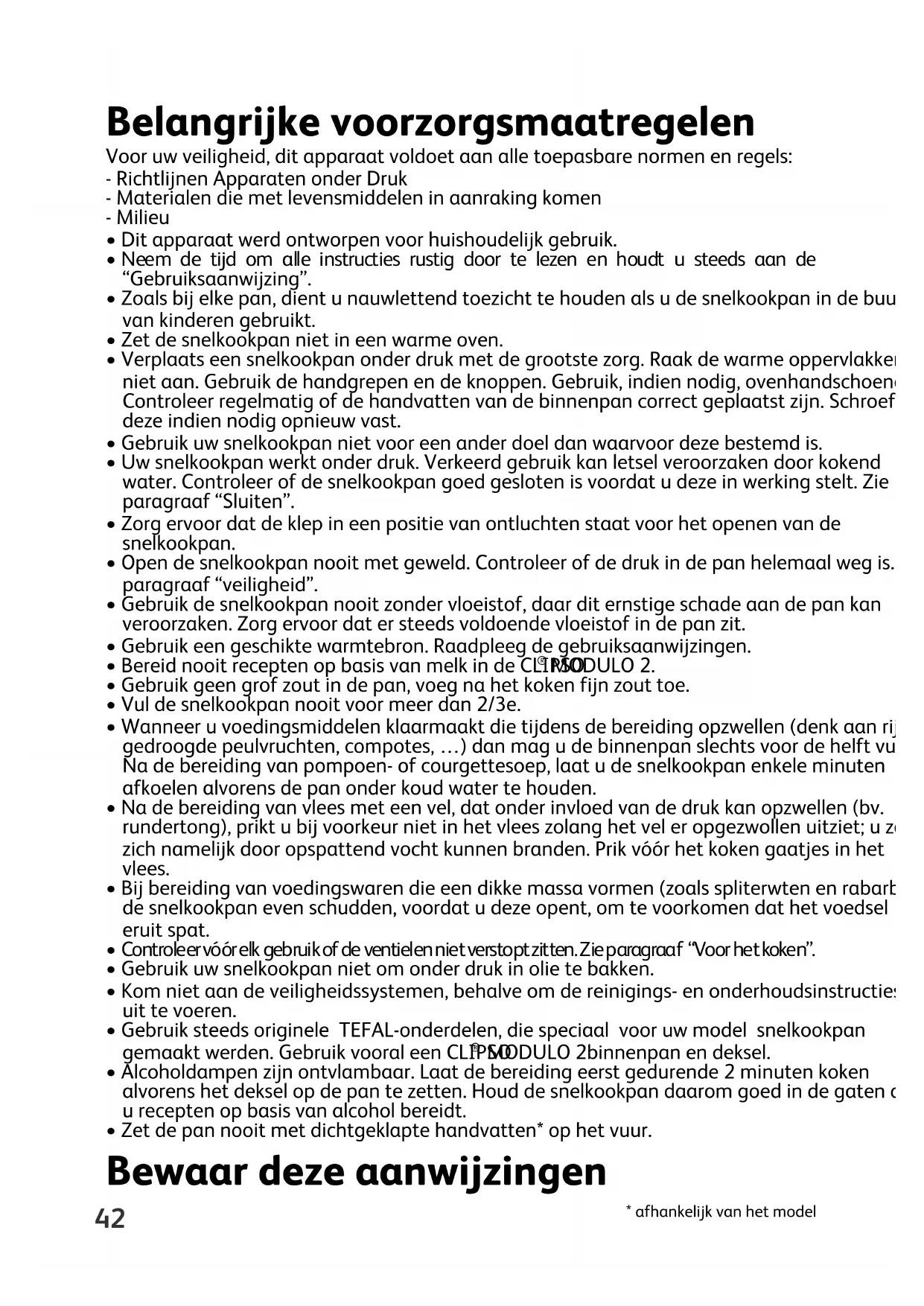 - Gebruik steeds originele TEFAL-onderdelen, die speciaal voor uw model snelkookpan gemaakt werden. Gebruik vooral een CLIPSO