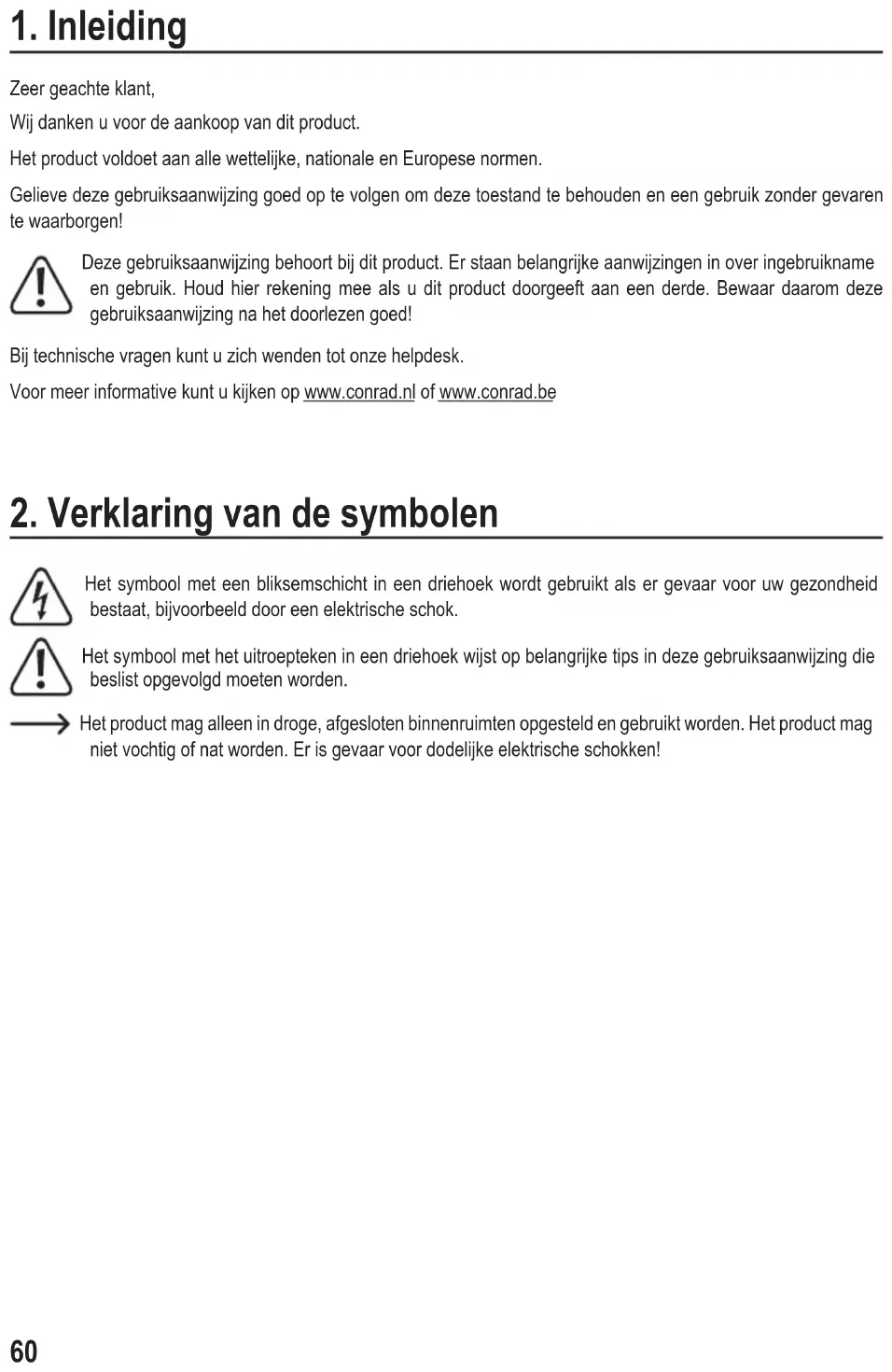 Zeer geachte klant, Wij danken u voor de aankoop van dit product. Het product voldoet aan alle wettelijke, nationale en Europese normen. Gelieve deze gebruiksaanwijzing goed op te volgen om deze toestand te behouden en een gebruik zonder gevaren te waarborgen! Deze gebruiksaanwijzing behoort bij dit product. Er staan belangrijke aanwijzingen in over ingebruikname en gebruik. Houd hier rekening mee als u dit product doorgeeft aan een derde. Bewaar daarom deze gebruiksaanwijzing na het doorlezen goed! Bij technische vragen kunt u zich wenden tot onze helpdesk. Voor meer informative kunt u kijken op www.conrad.nl of www.conrad.be