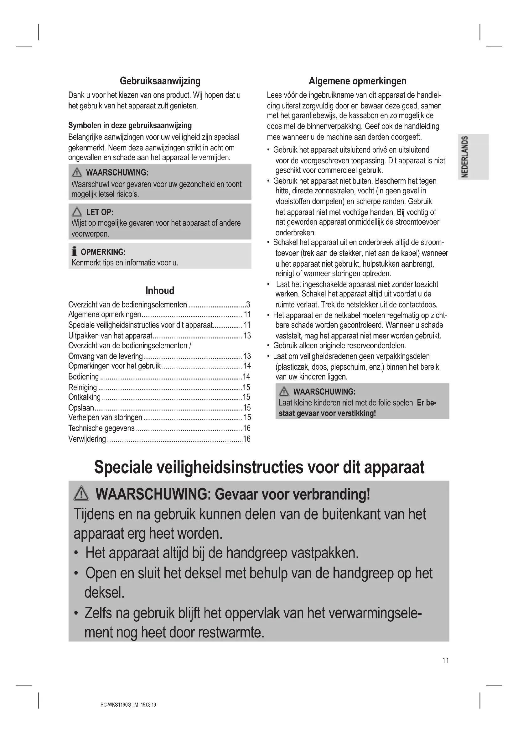 - Speciale veiligheidsinstructies voor dit apparaat p. 11