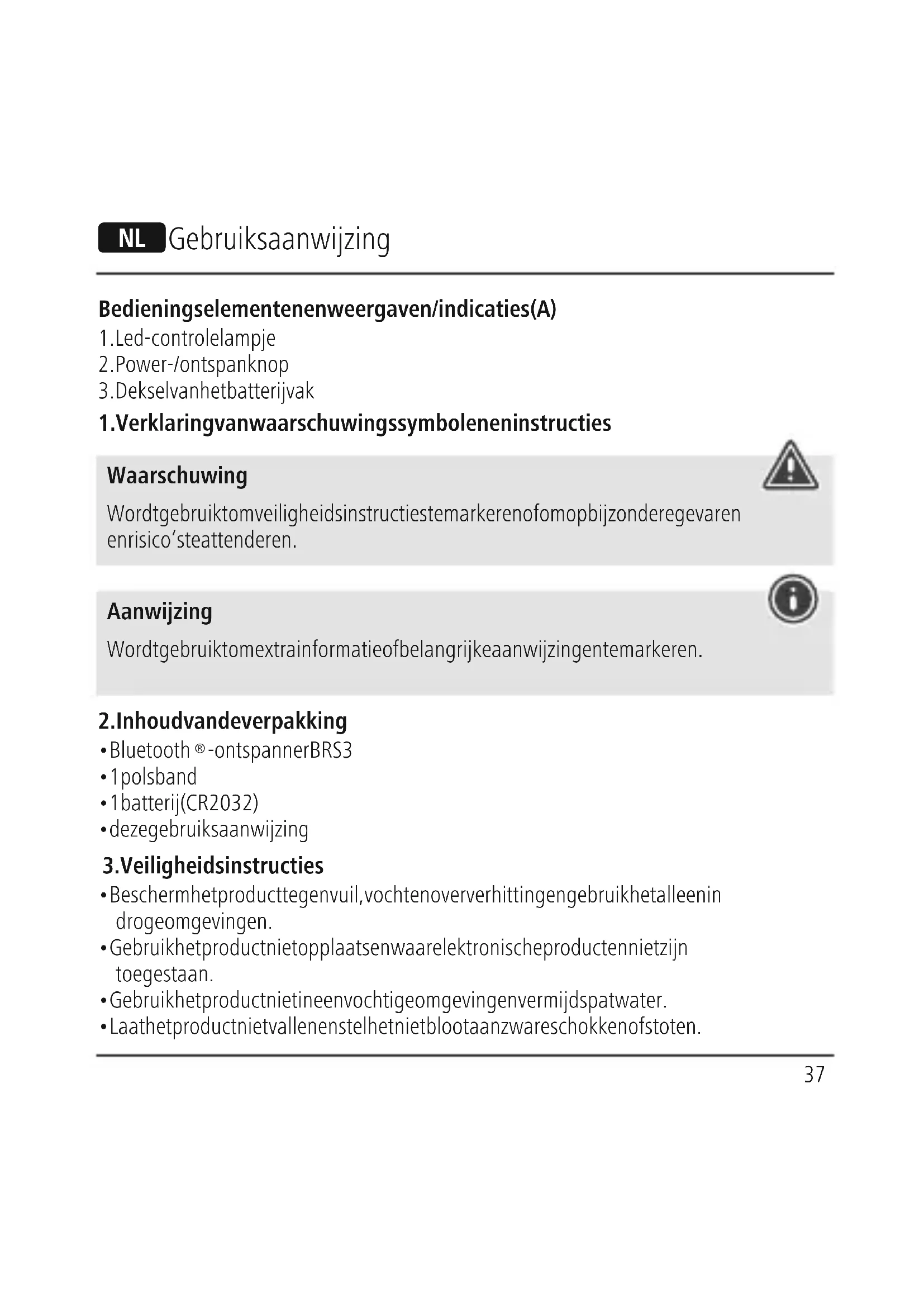 - Open het product niet en gebruik het niet meer bij beschadigingen. Waarschuwing - batterijen / knoopcellen