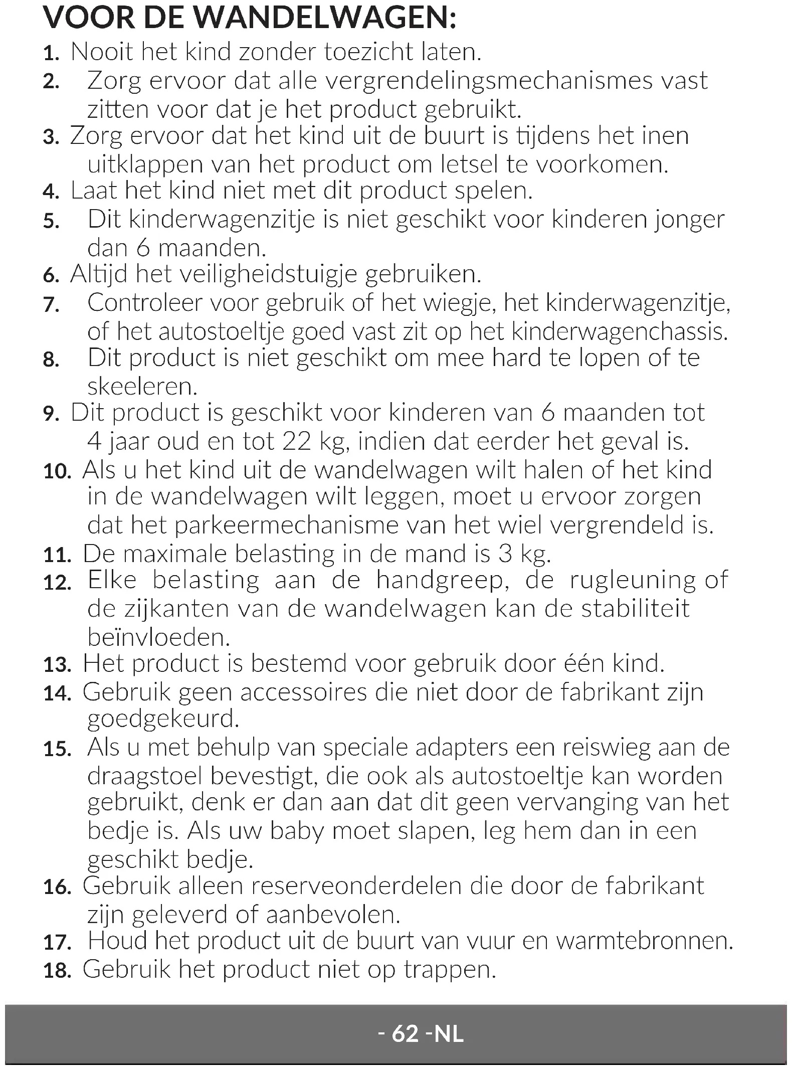 10. Het kind kan in de reiswieg worden gedragen.
