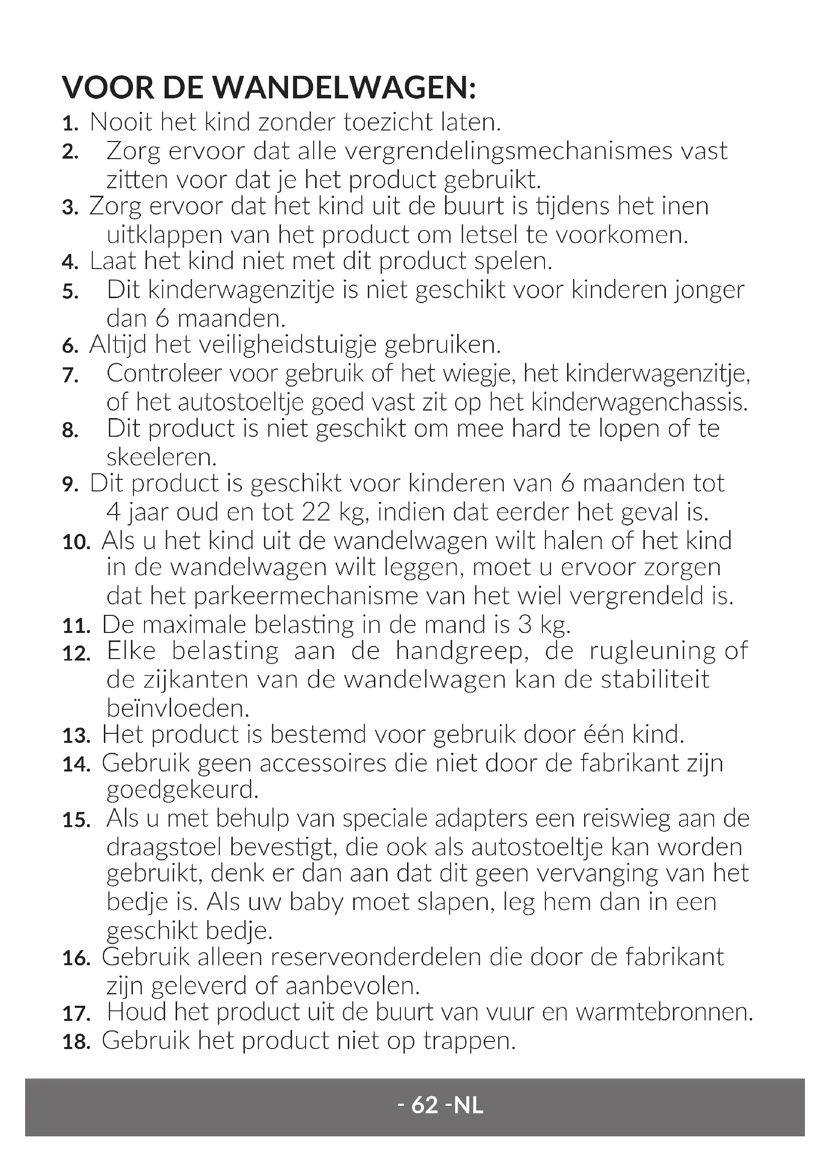 10. Het kind kan in de reiswieg worden gedragen.
