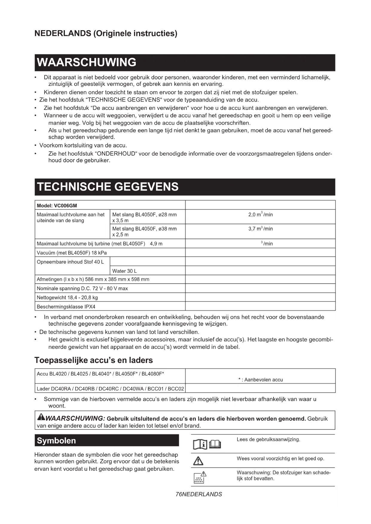 Accustofzuiger GEBRUIKSAANWIJZING 76