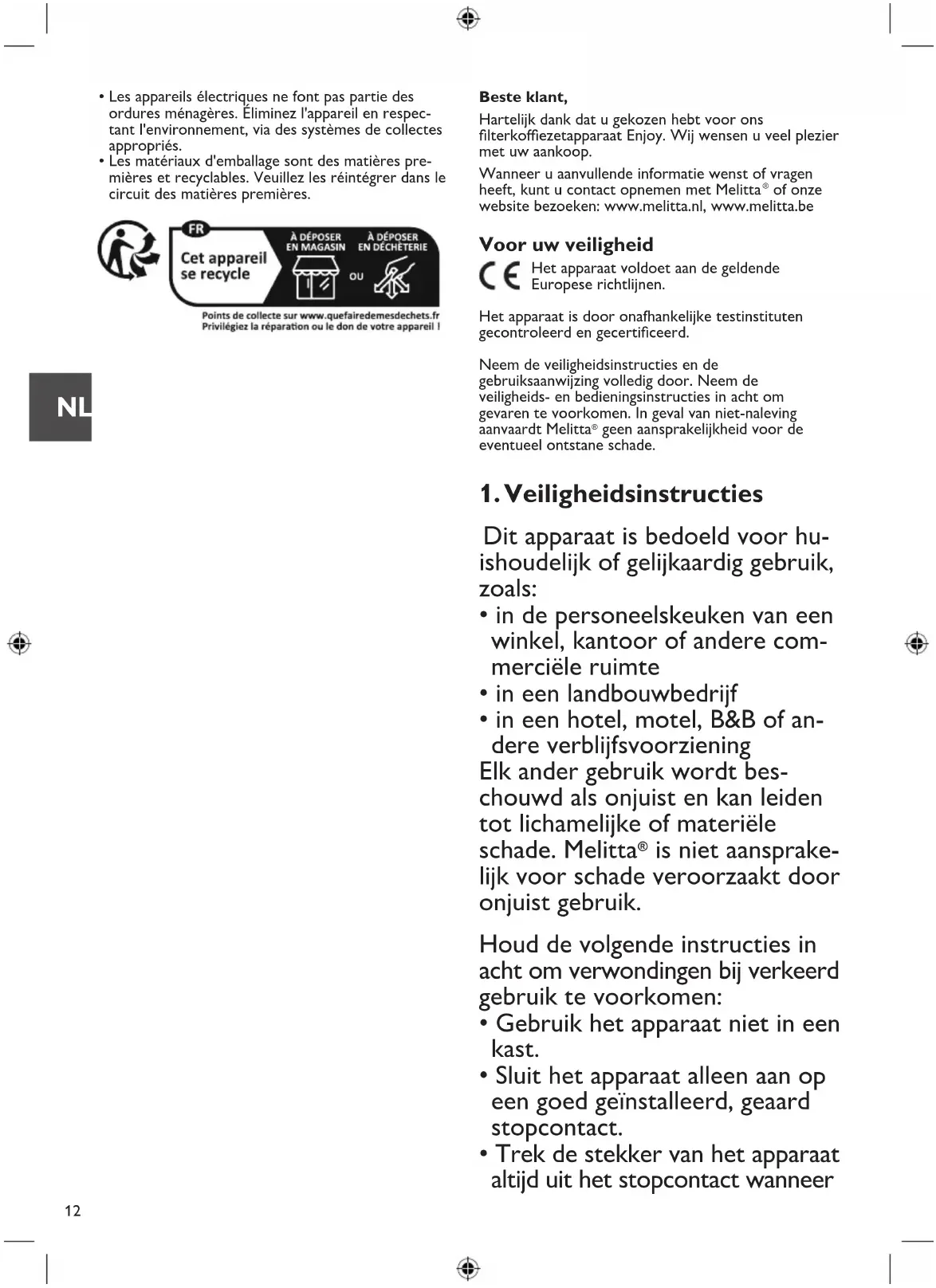 of onze website bezoeken: www.melitta.nl, www.melitta.be Voor uw veiligheid
