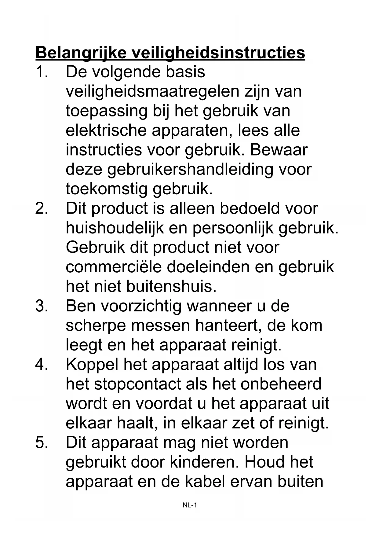 Dit apparaat mag niet worden gebruikt door kinderen. Houd het apparaat en de kabel ervan buitenNL-2 bereik van kinderen.
