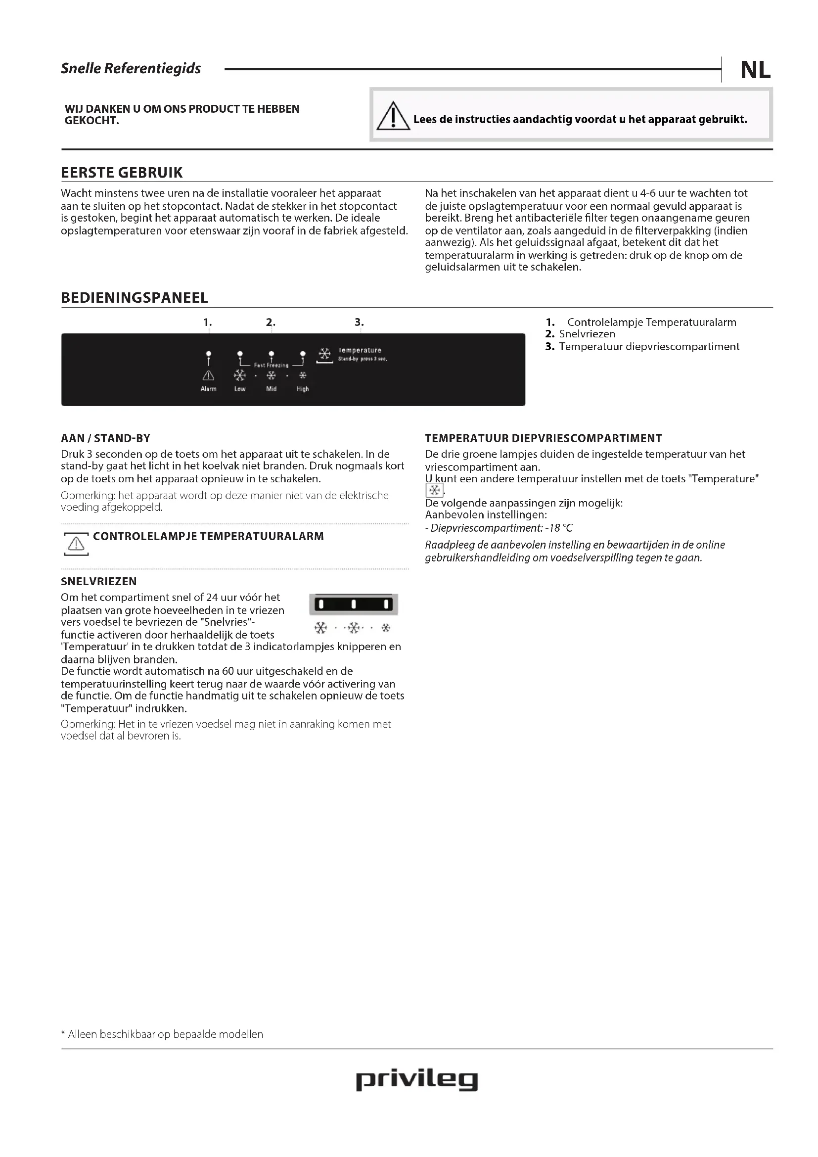 PFVI 9S1 - Vriezer PRIVILEG - Gratis gebruiksaanwijzing en handleiding